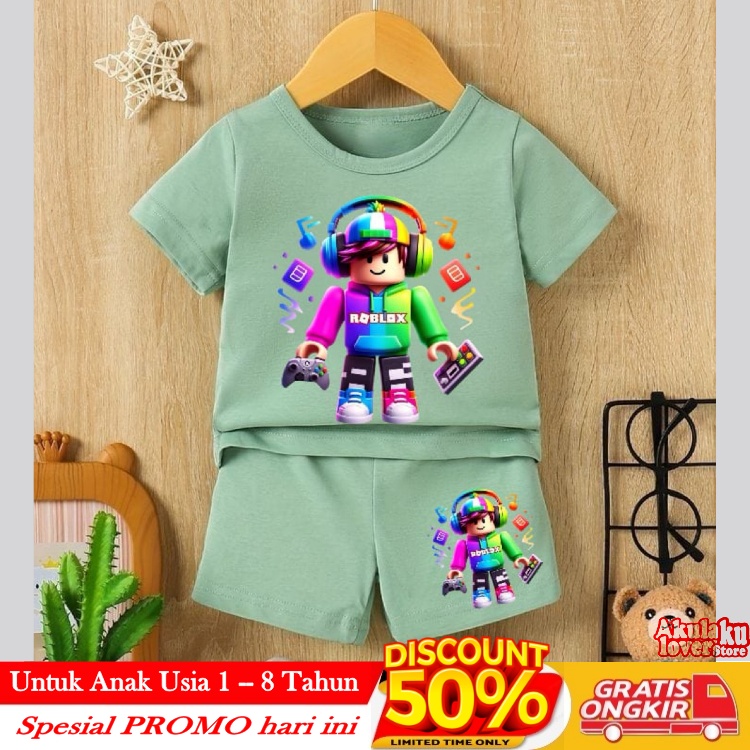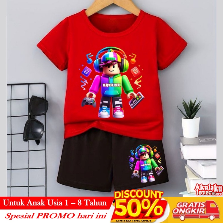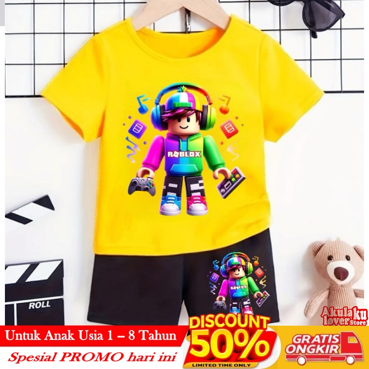 [Mall] Baju Anak Roblox - Setelan baju dan celana pendek motif Roblox anak Cowok / Cewek usia 1 sampai 8 tahun - cho