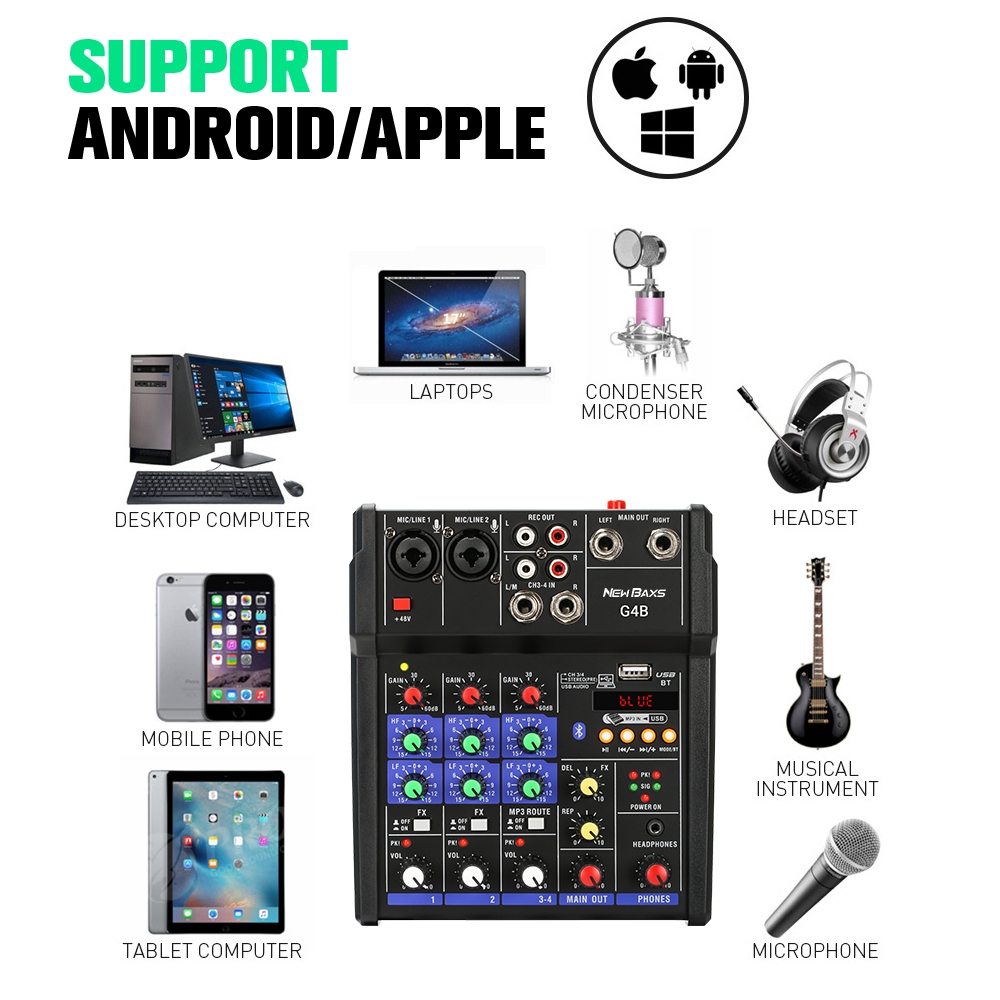 NEW BAXS G4B/G4 audio mixer small Professional 4 channels support Bluetooth/USB/pc/MP3 playback support