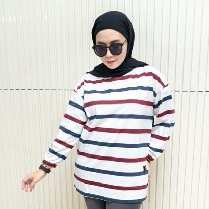 FST Kaos Oversize Wanita Garis Katun Premium Lengan 7/8 Jumbo T-Shirt Oversize Stripe Belang - Belang Salur Kaos Wanita Garis