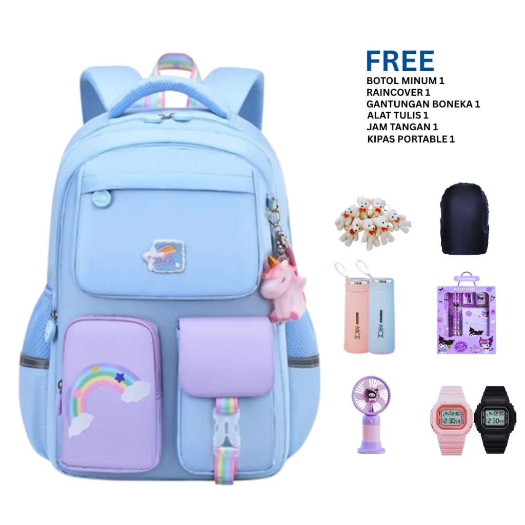 Tas Ransel Sekolah SD Anak Perempuan Motif Pelangi Terbaru Tas Bahu Terlaris 2025