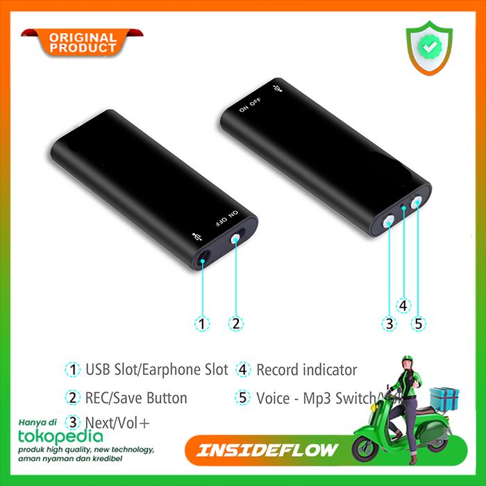 Voice Recorder Digital Mini Portable Perekam Suara Hyperbolic 8Gb