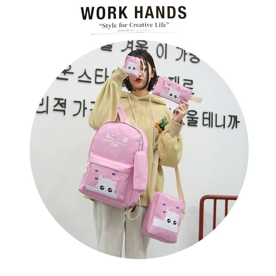 Rya.id - SALE Tas Anak Perempuan SD Ransel Karakter kucing 4in1 Backpack Anak Sekolah Tas Anak Perempuan Populer Kekinia