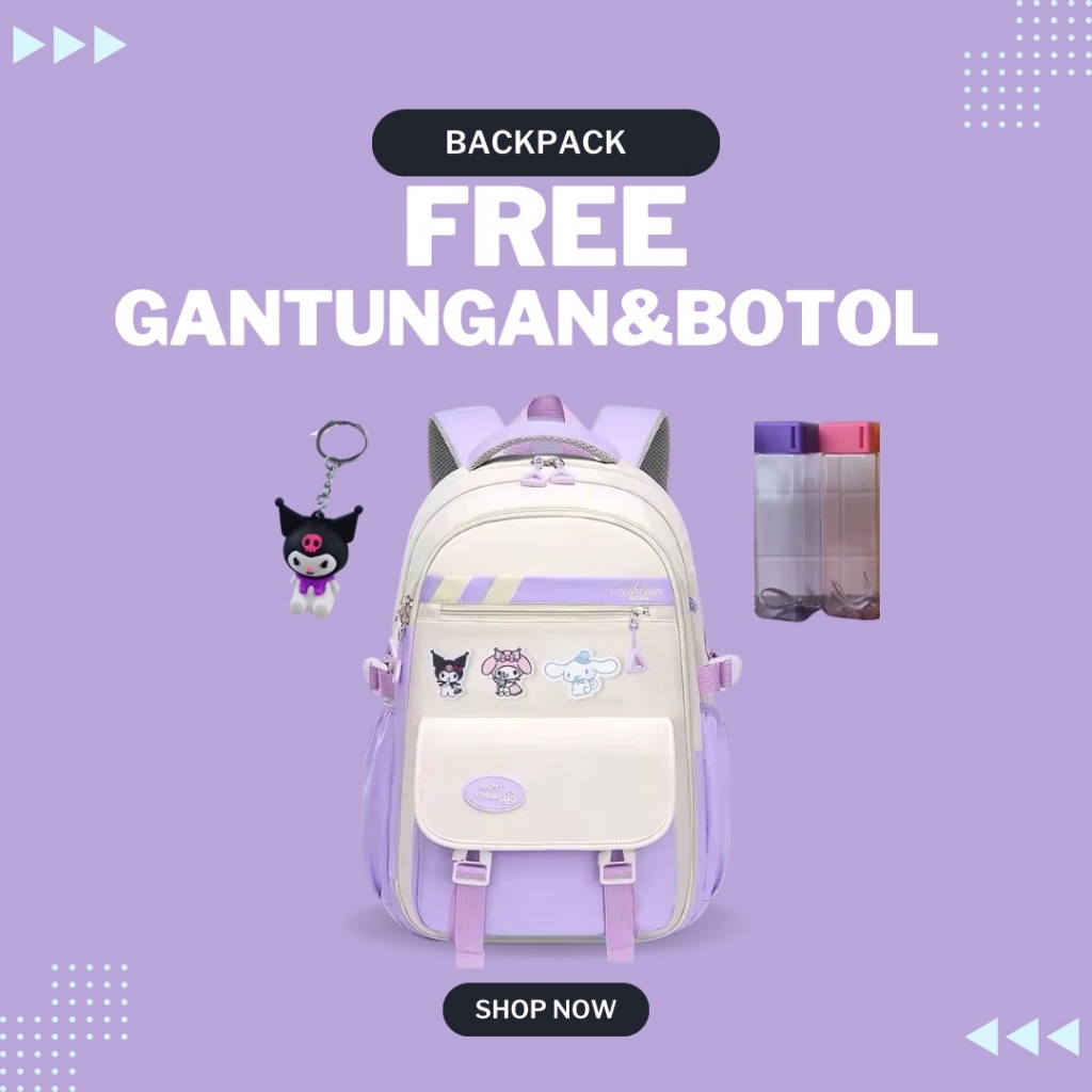 TAS SEKOLAH ANAK PEREMPUAN MODEL KULKAS KUROMI TAS SEKOLAH ANAK CEWEK RANSEL SEKOLAH DASAR KAPASITAS BESAR BANYAK RUANG