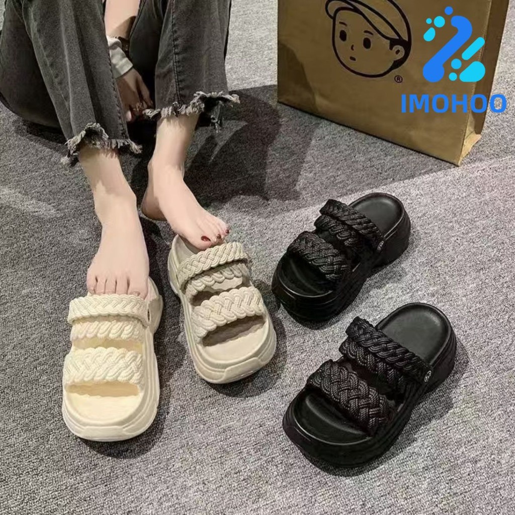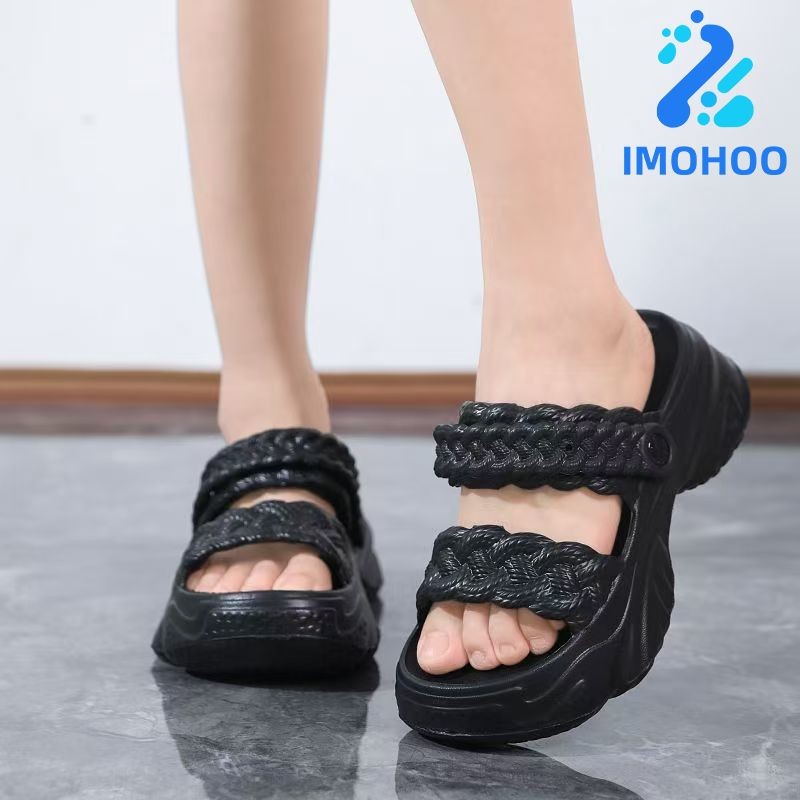 IMOHOO Sandal Anak Perempuan WedgesTali Belakang Kepang Sandal Gunung Wanita Casual Korea Jelly EVA