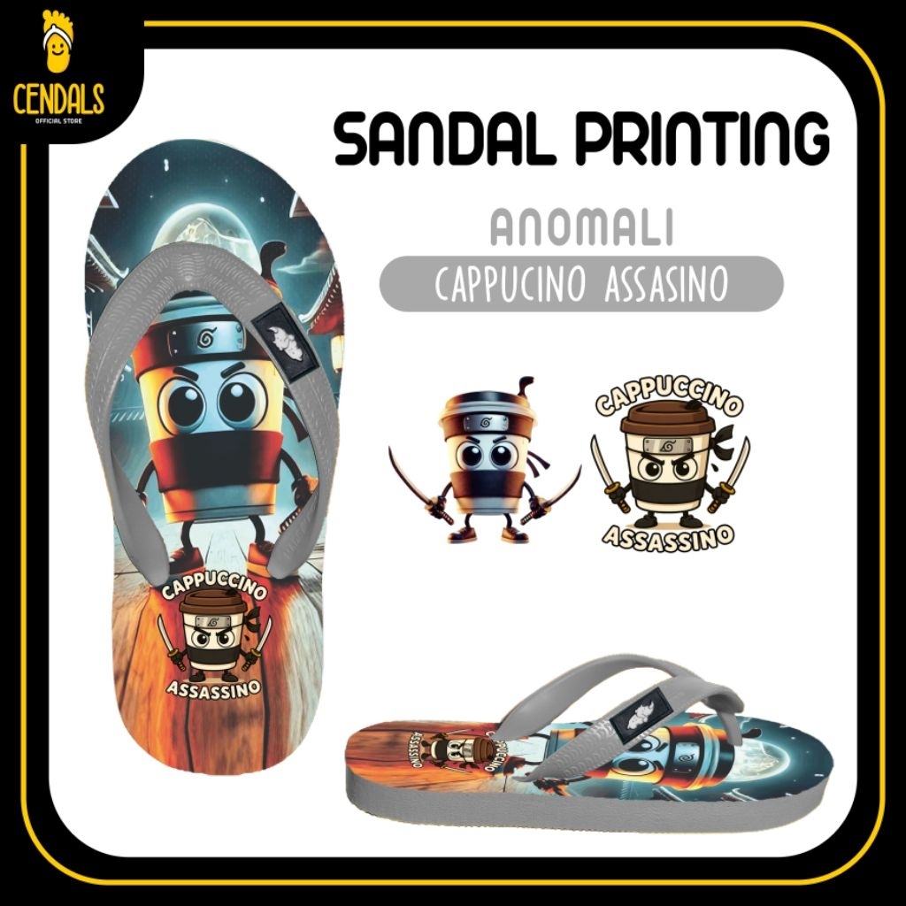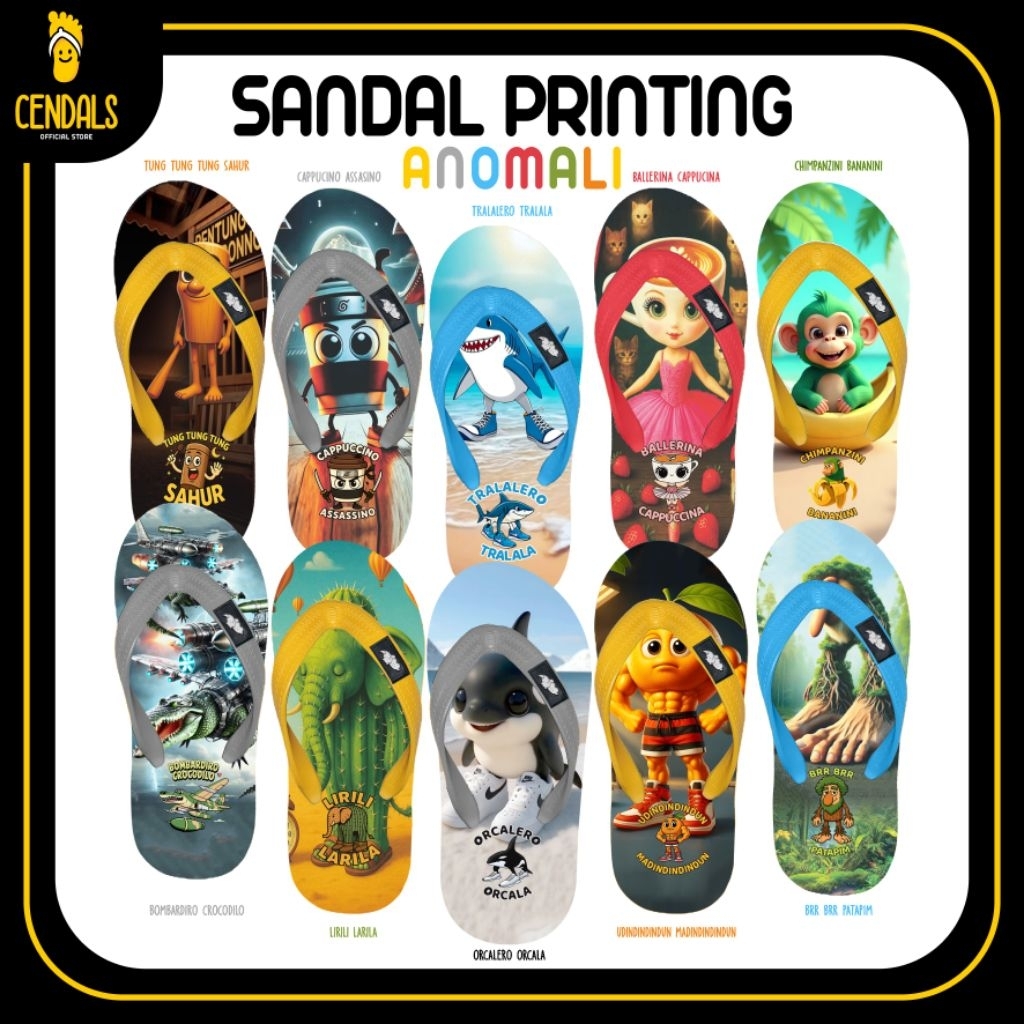 Cendals Sandal Jepit Anak Printing Tema Anomali Tung Tung Tung Sahur, Tralalero Tralala, Cappucino Assasino, Ballerina C