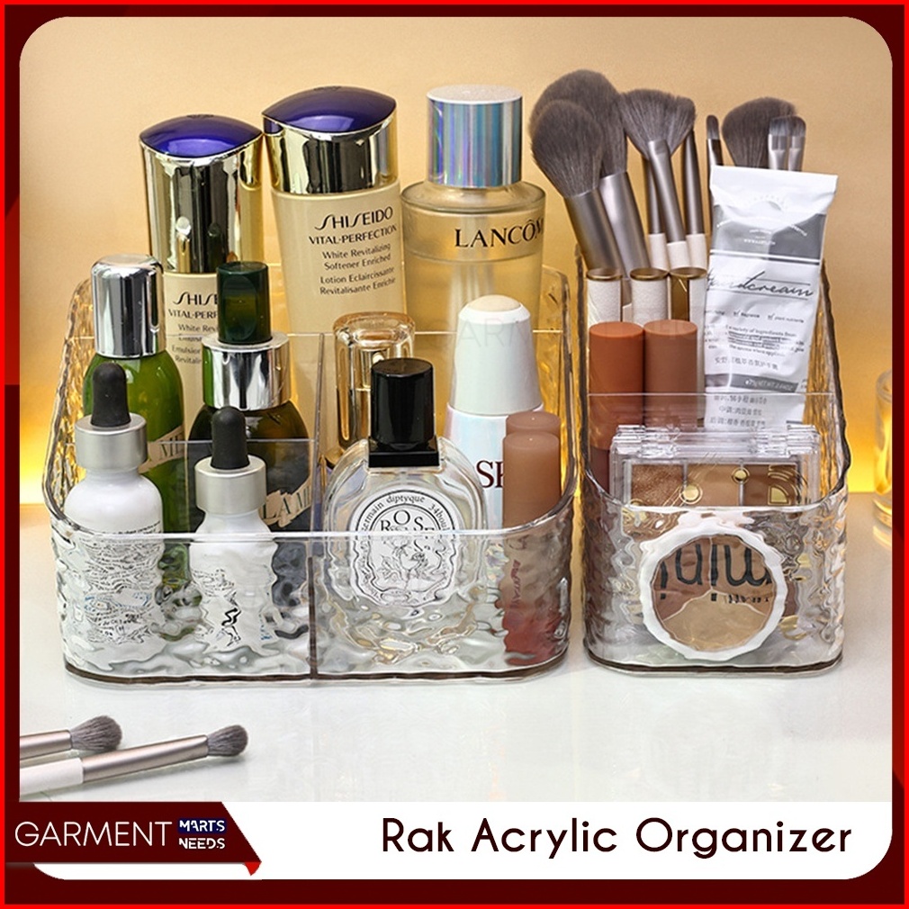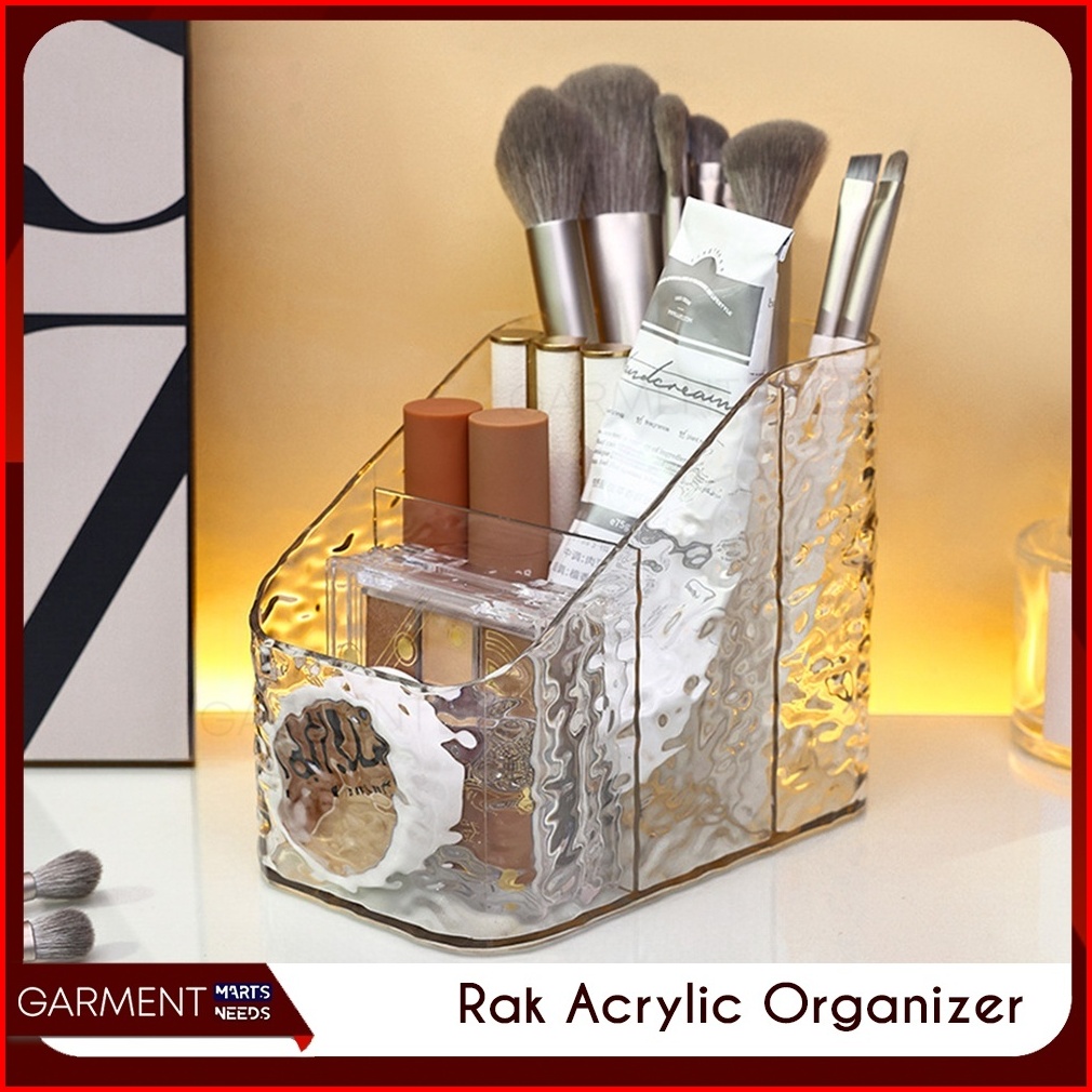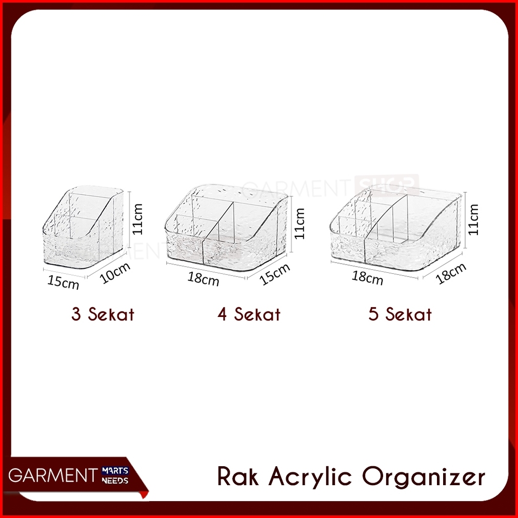 Rak Desktop 4 5 Sekat Tempat Penyimpanan Kosmetik Stationery Organizer Box Kristal Transparan Multifungsi