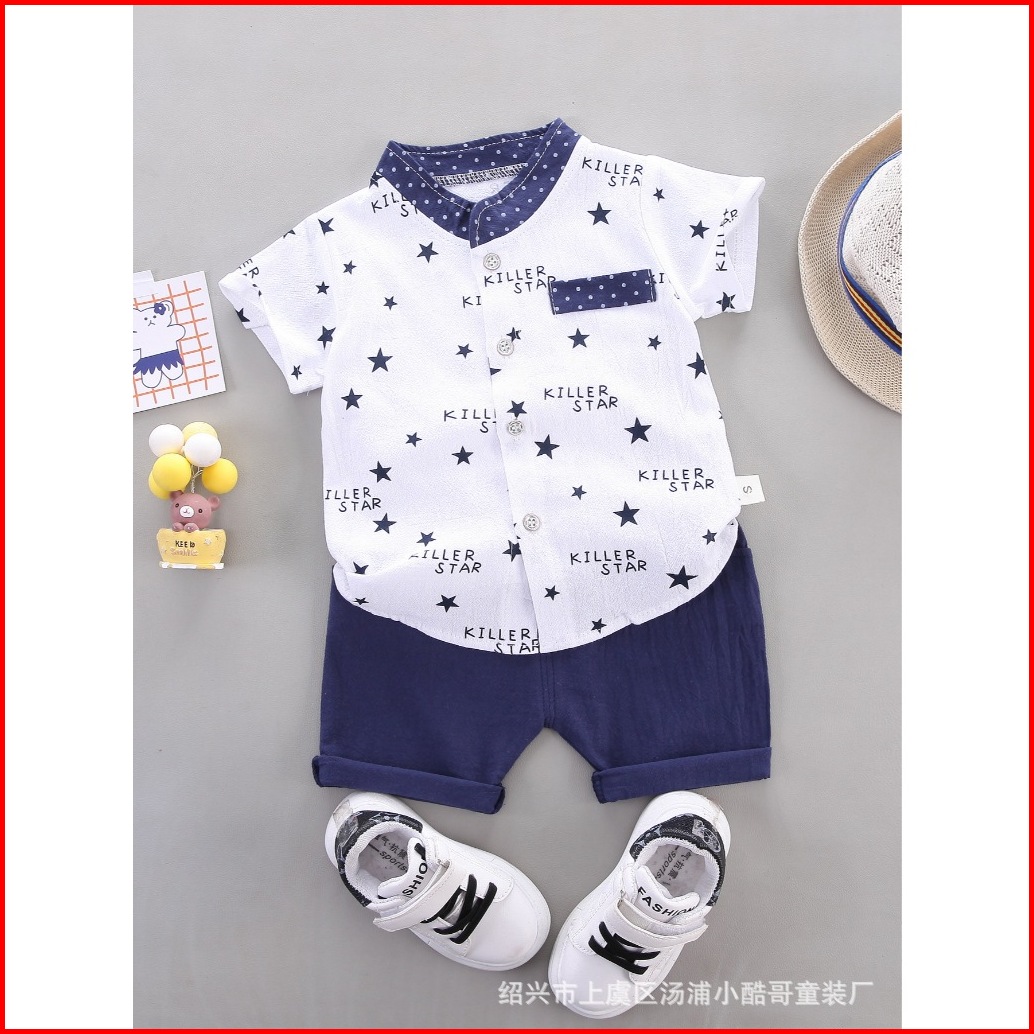 Niuniu 6bln-4tahun Setelan Kemeja Anak Motif Stars Import