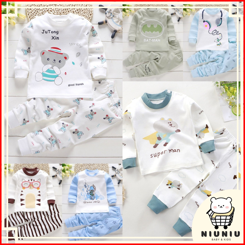 Niuniu Setelan Piyama Anak 0-5 Tahun Baju Bayi Bahan Kaos Lengan Celana Panjang Berkualitas Impor