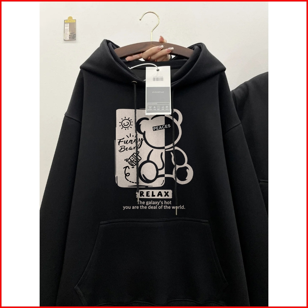 Forteid Hoodie Sweater Wanita Oversize Grafiti Motif Beruang Lucu Korean Style Baju Wanita Kekinian Baju Wanita Switer W