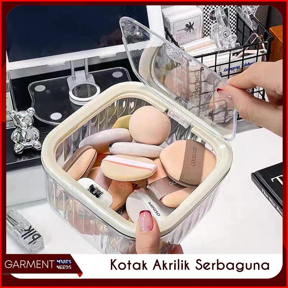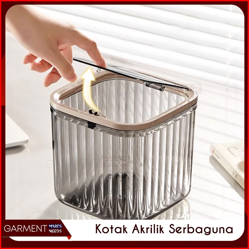 Kotak Transparan Tempat Penyimpanan Stationery Aksesoris Kosmetik Box Tekan Buka Tutup Wadah Serbaguna