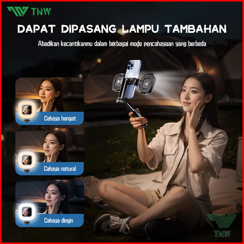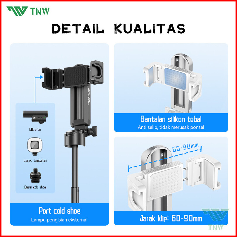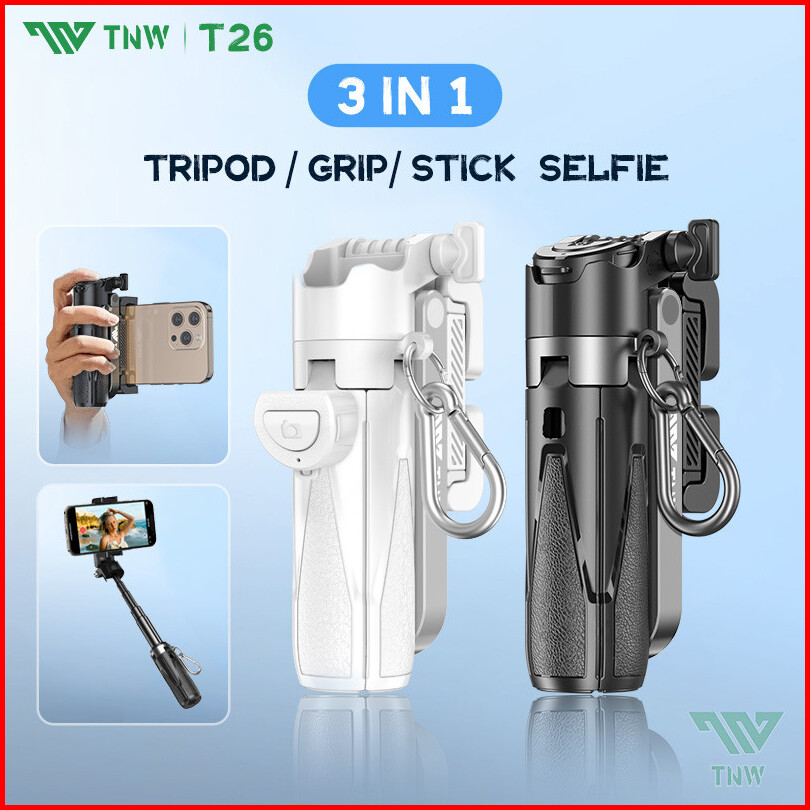 Tnw T26 Extendable Grip Tripod Mini Selfie Stick Remote Control Tripod 3 In 1 Tongsis Tripod Bluetooth Dan Lampu