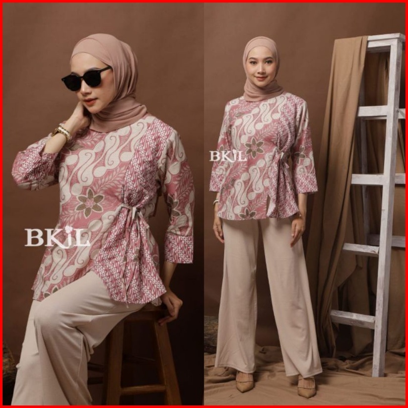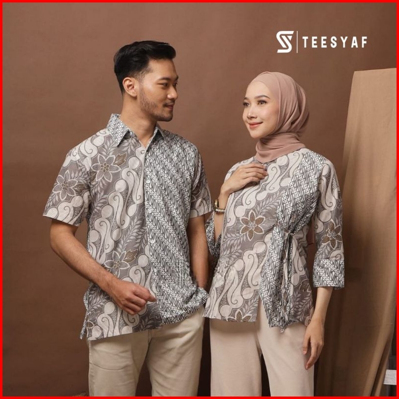 Teesyaf - Bk2-02 Baju Couple Blouse Batik Pria Wanita Kerja Formal Modern Kekinian Motif Tsk Maharini