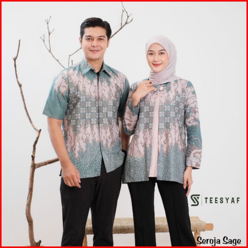 Teesyaf An1-04 Batik Couple Atasan Kerja Formal Pria Wanita Modern Bolero Seroja