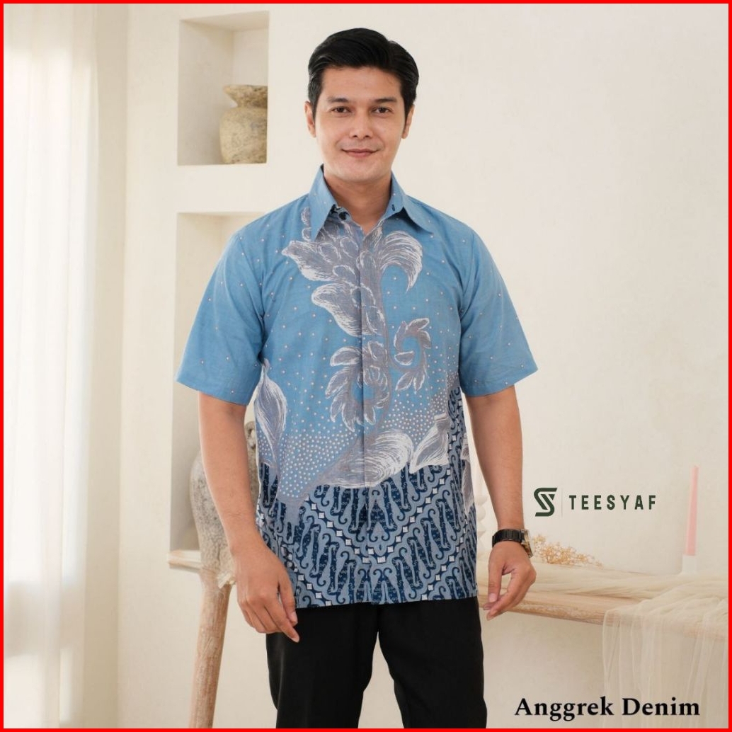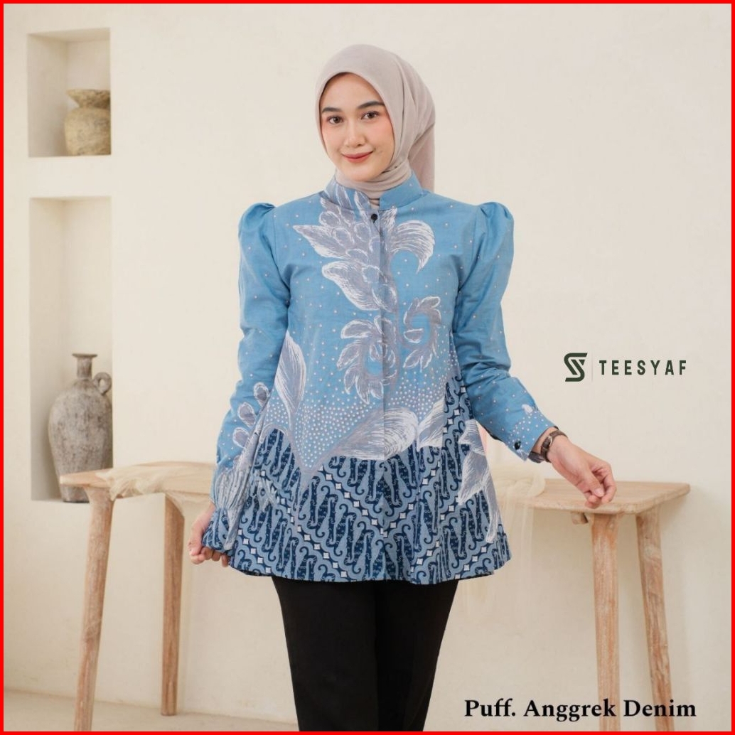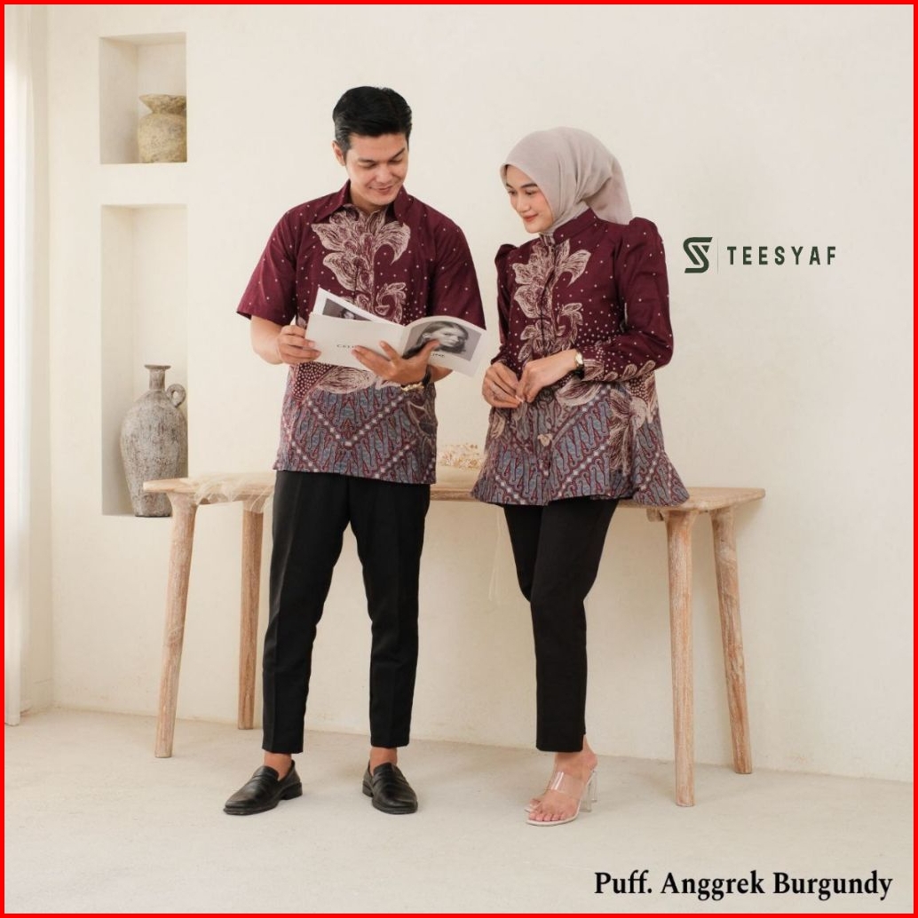 Teesyaf - An1-07 Baju Batik Couple Atasan Kerja Pria Wanita Seragam Kantor Motif Puffy Anggrek