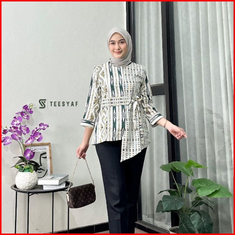 Teesyaf - Ba0-12 Atasan Batik Couple Kerja Kantor Seragam Pria Wanita Motif Raster Modern