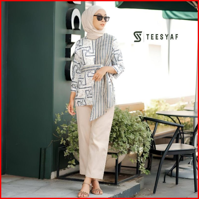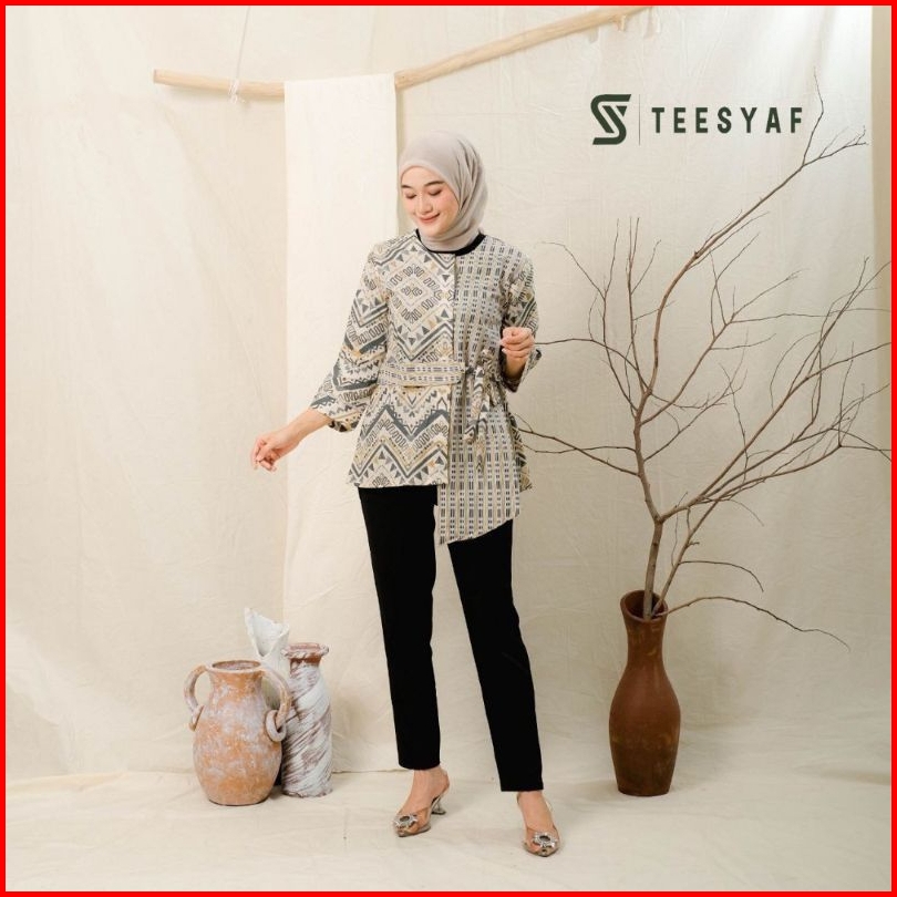 Teesyaf - Ba0-12 Baju Batik Atasan Wanita Kerja Formal Modern Motif Celinea