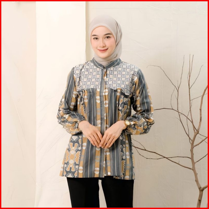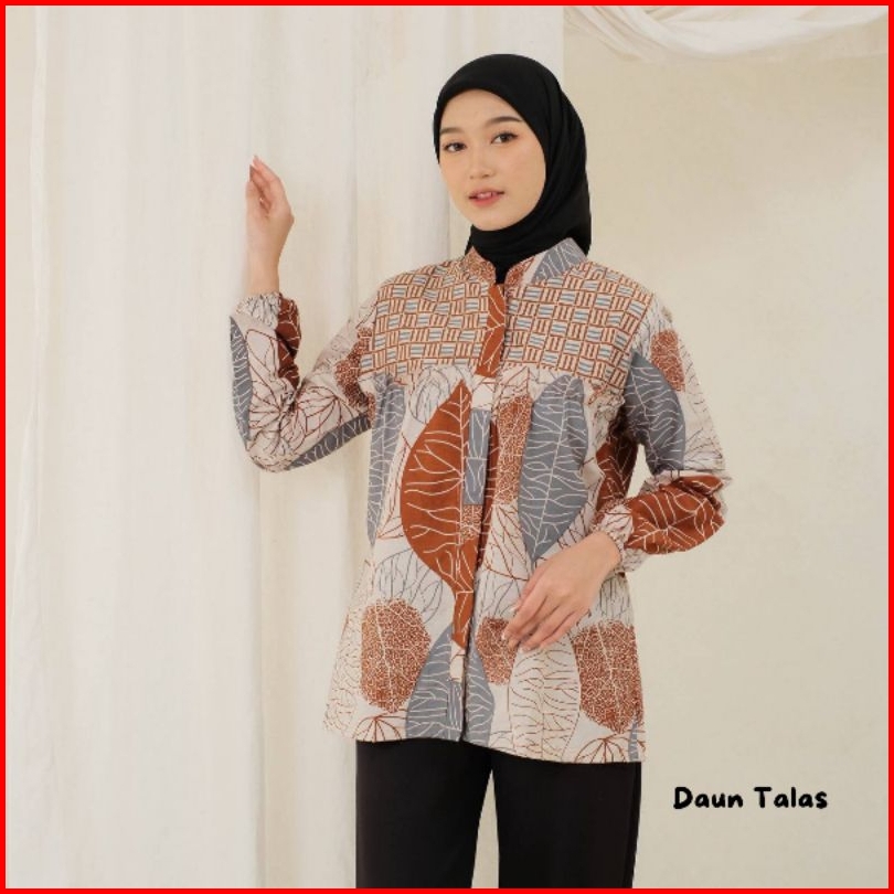 Teesyaf - Ba0-18 Atasan Blouse Baju Batik Wanita Kerja Kuliah Formal Modern Motif Daun Talas