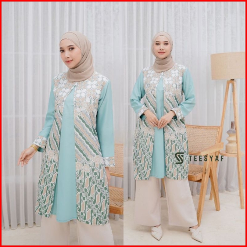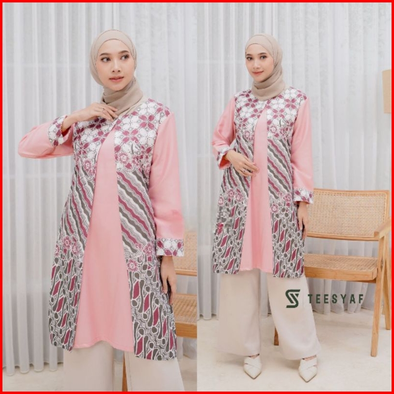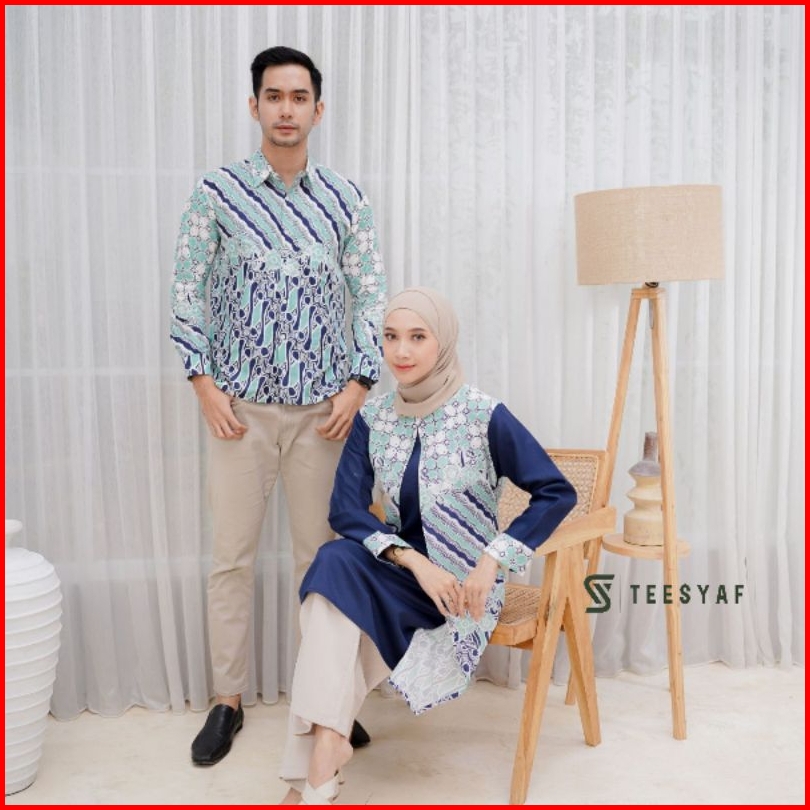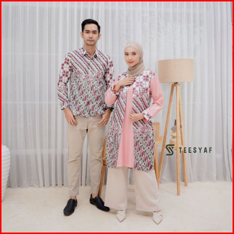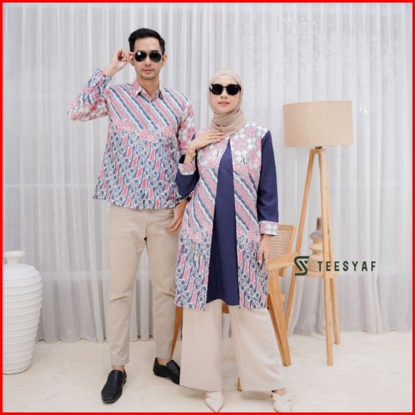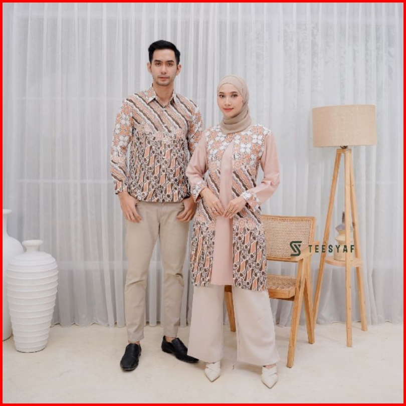 Teesyaf - Bk2-05 Tunik Batik Couple Pasangan Sarimbit Pria Wanita Bolero Lengan Panjang Blk Motif Diana