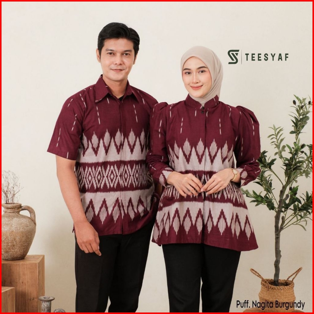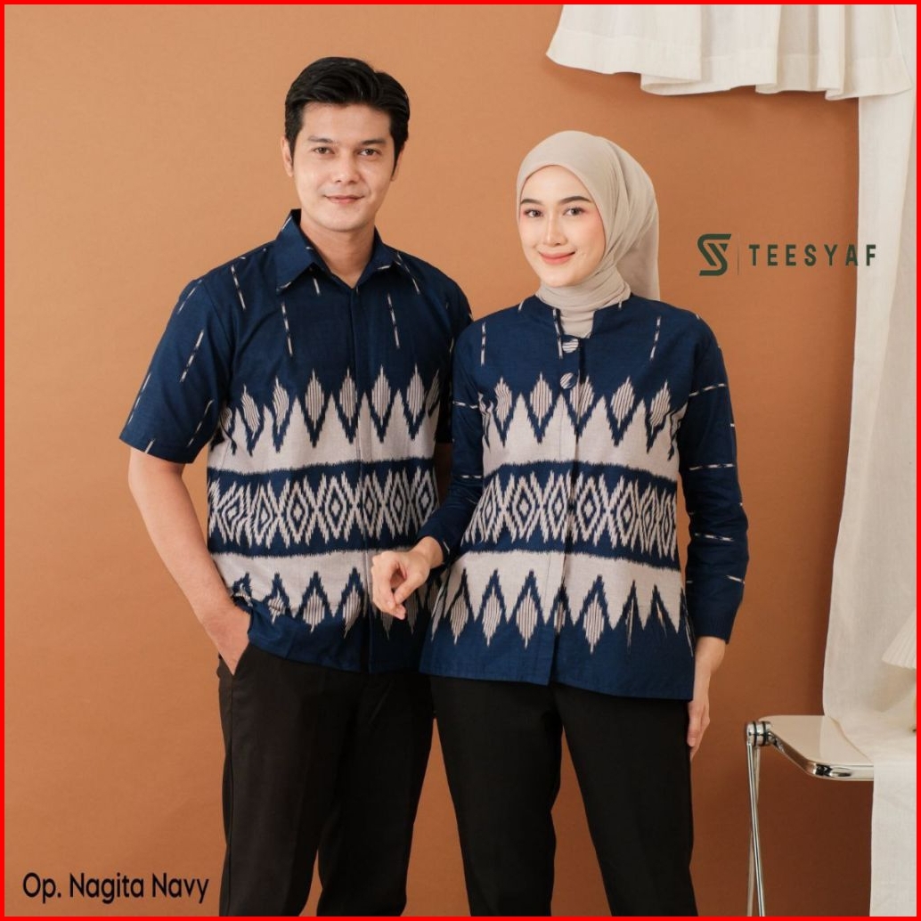 Teesyaf - An1-07 Baju Batik Couple Atasan Kerja Pria Wanita Seragam Kantor Motif Puffy Nagita
