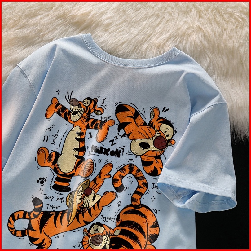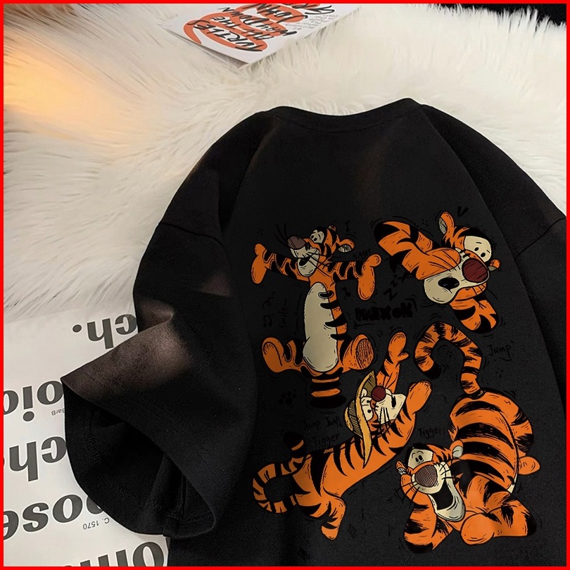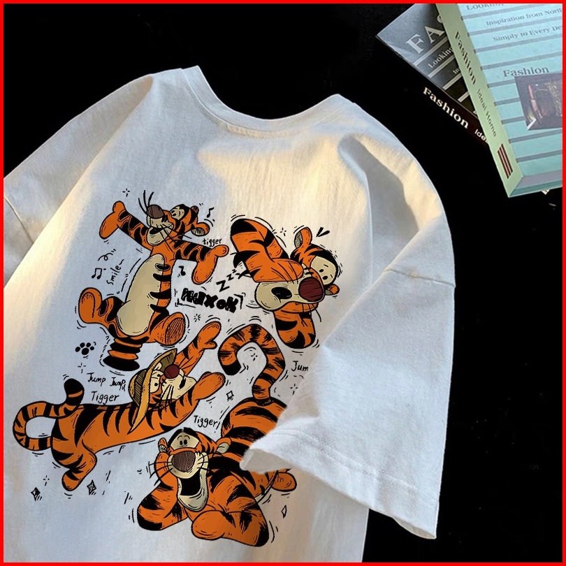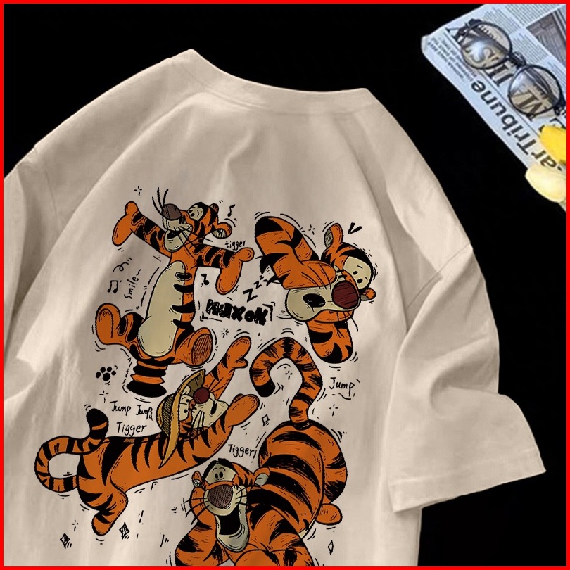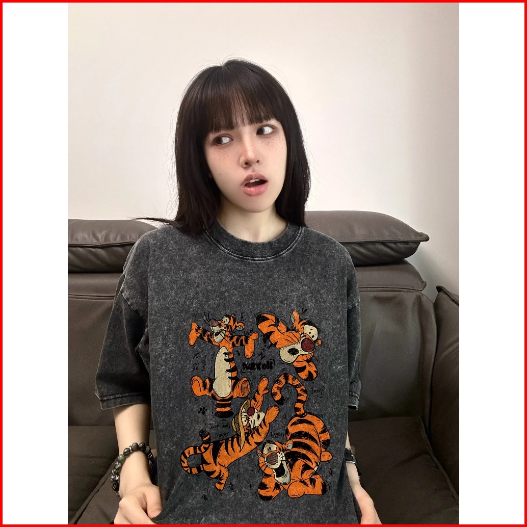 Forteid T-shirt Washed Oversize Cartoon Tigger Lucu Baju Atasan Lengan Pendek Wanita Kaos Oversize Terbaru Kaos Lucu Wan