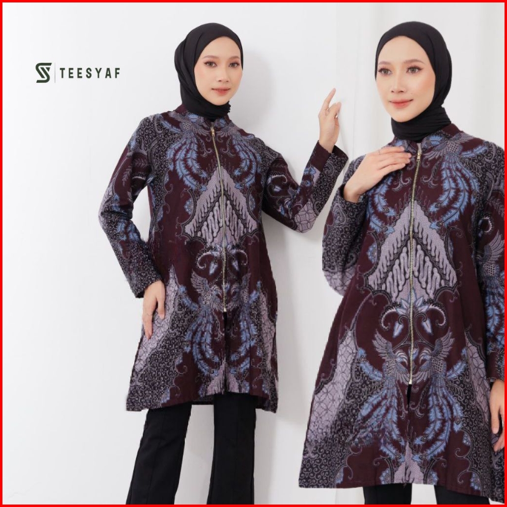 Teesyaf - Bk2-09 Baju Batik Couple Tunik Blouse Kemeja Pria Wanita Lengan Panjang Motif Freesia