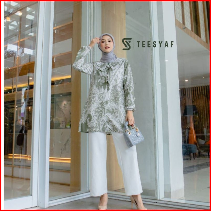 Teesyaf - Bk2-06 Baju Batik Kerja Atasan Wanita Formal Modern Motif Theeya