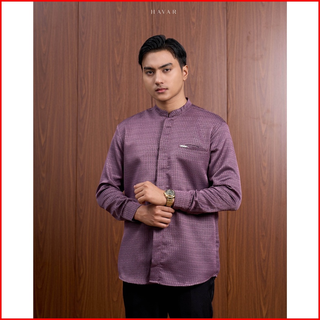 Havar Fadi Purple Kemeja Koko Muslim Premium Slimfit Lengan Panjang