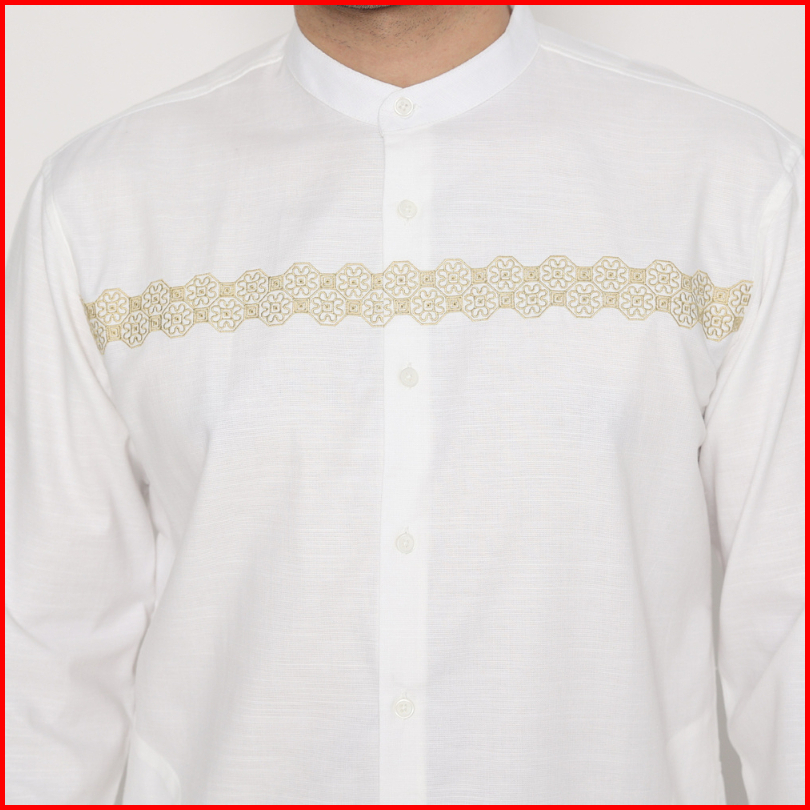 Amk Baju Koko Lengan Panjang Bordir Kk Salman L S Putih