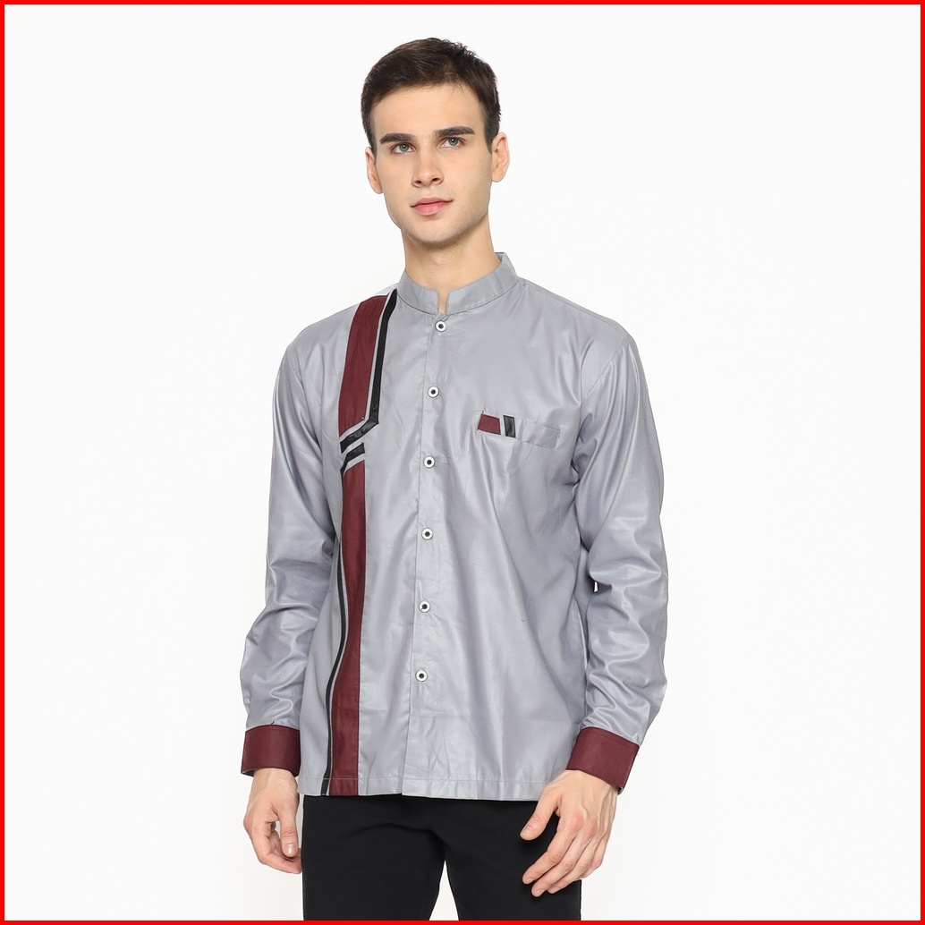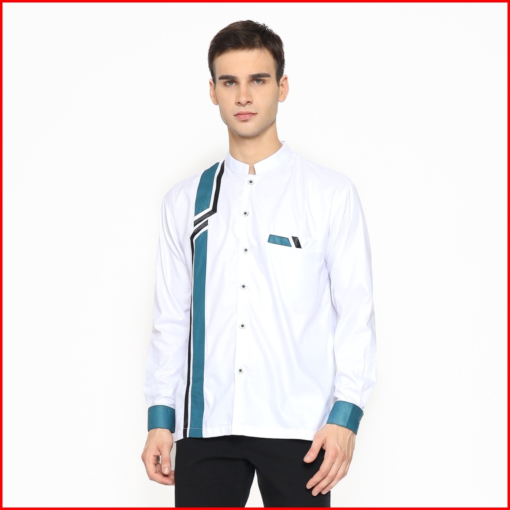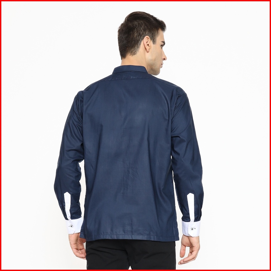 Asakhi - Baju Koko Pria Muslim Lengan Panjang Koko Hadroh Azzahir Motif Petir Warna Navy M L Xl