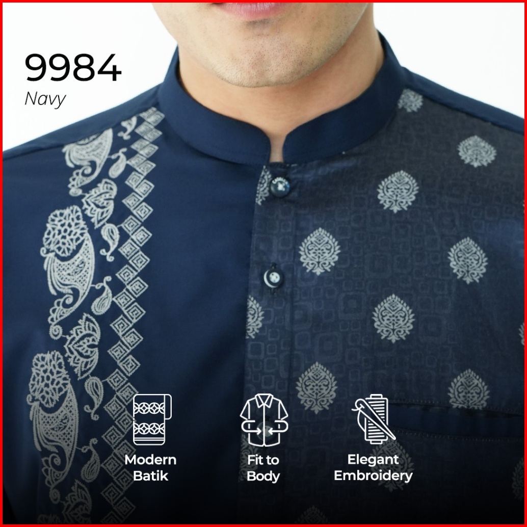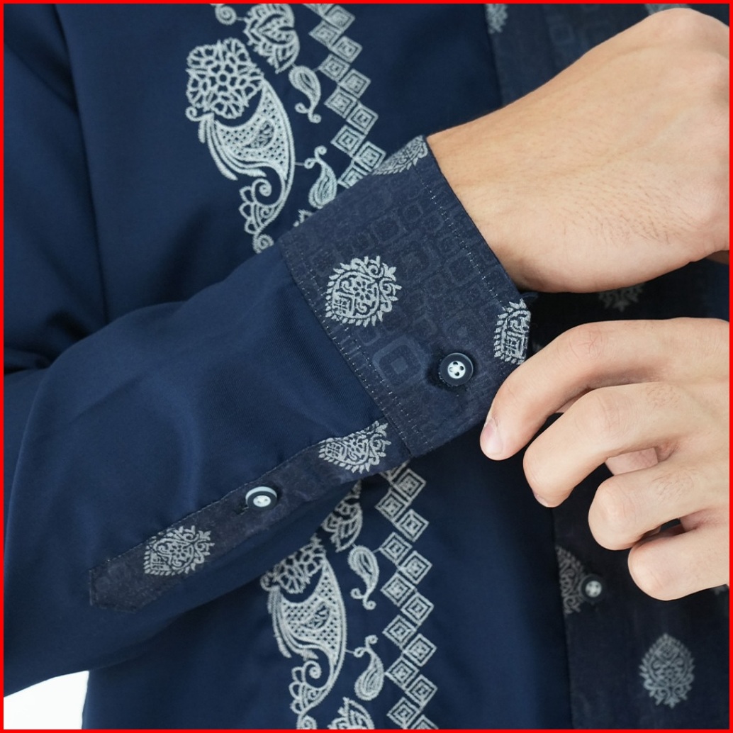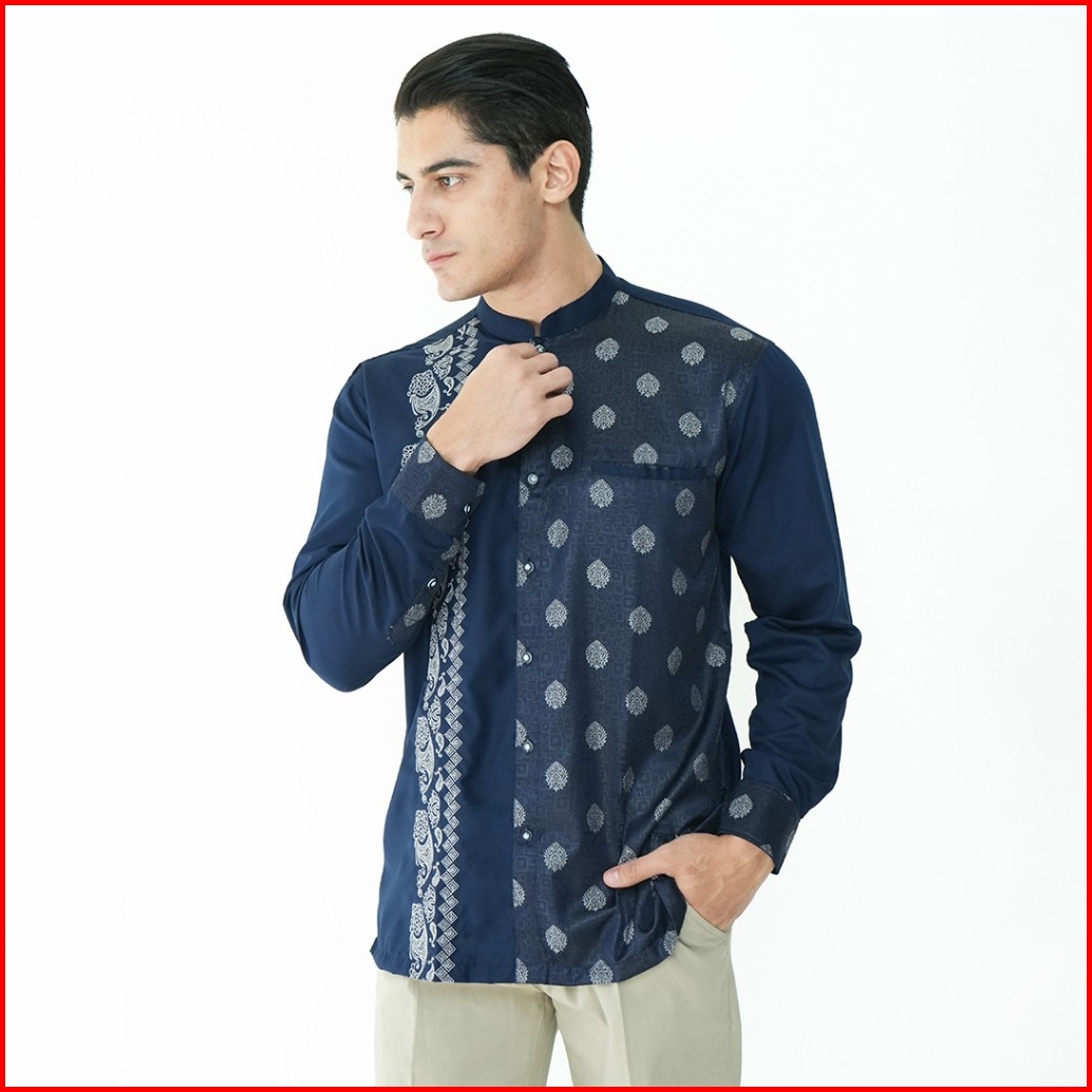 Casella Baju Koko Pria Lengan Panjang Baju Koko Batik Riyadh 9984 Navy