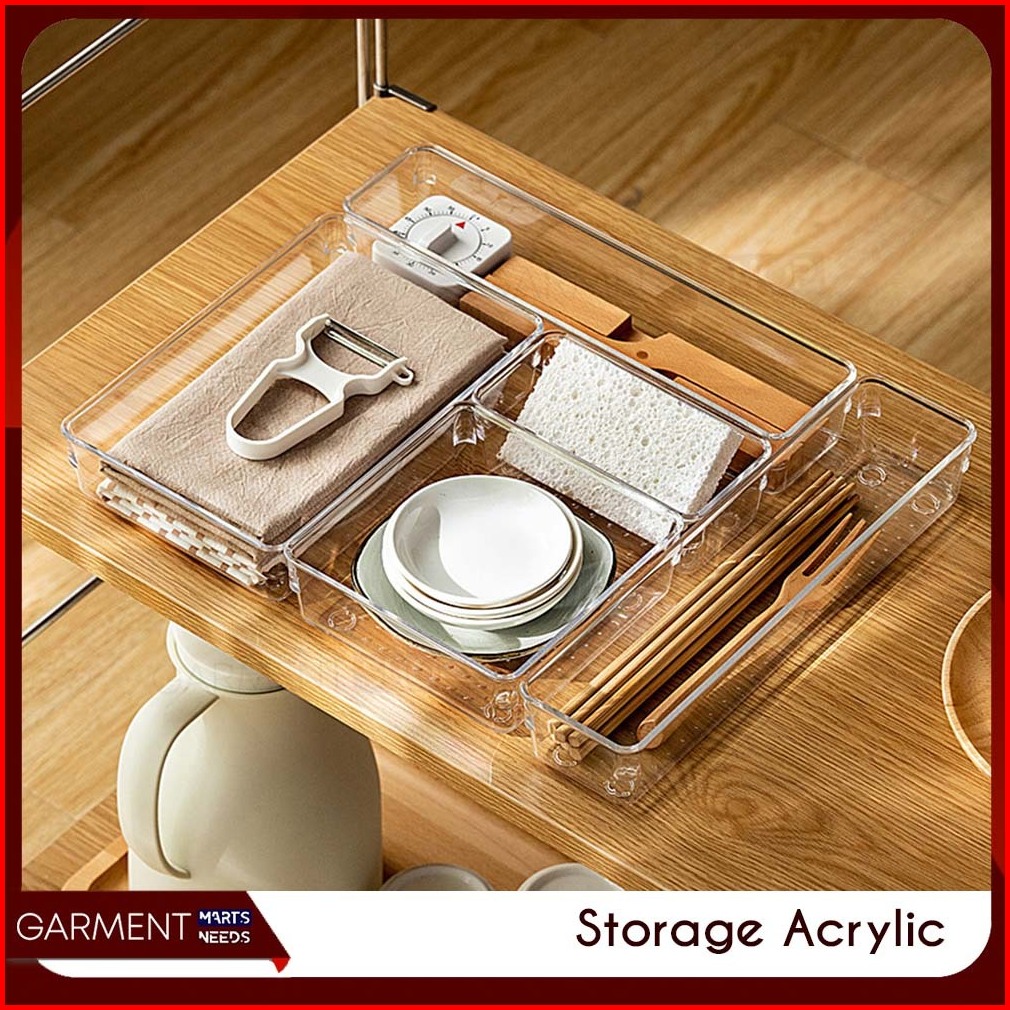 Set Akrilik Box 4 Pcs Wadah Sekat Penyimpanan Makanan Kulkas Storage Box Kotak Bening Multifungsi