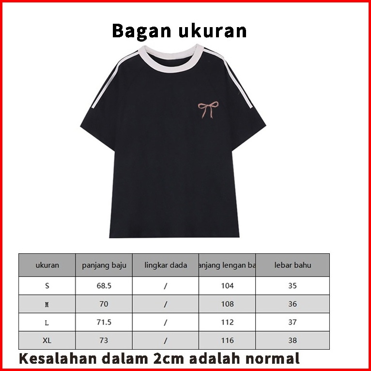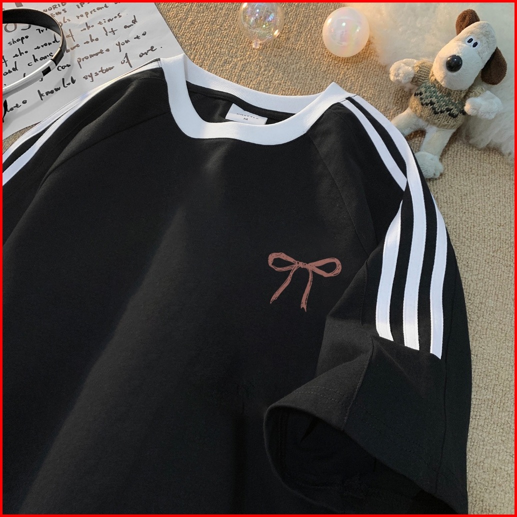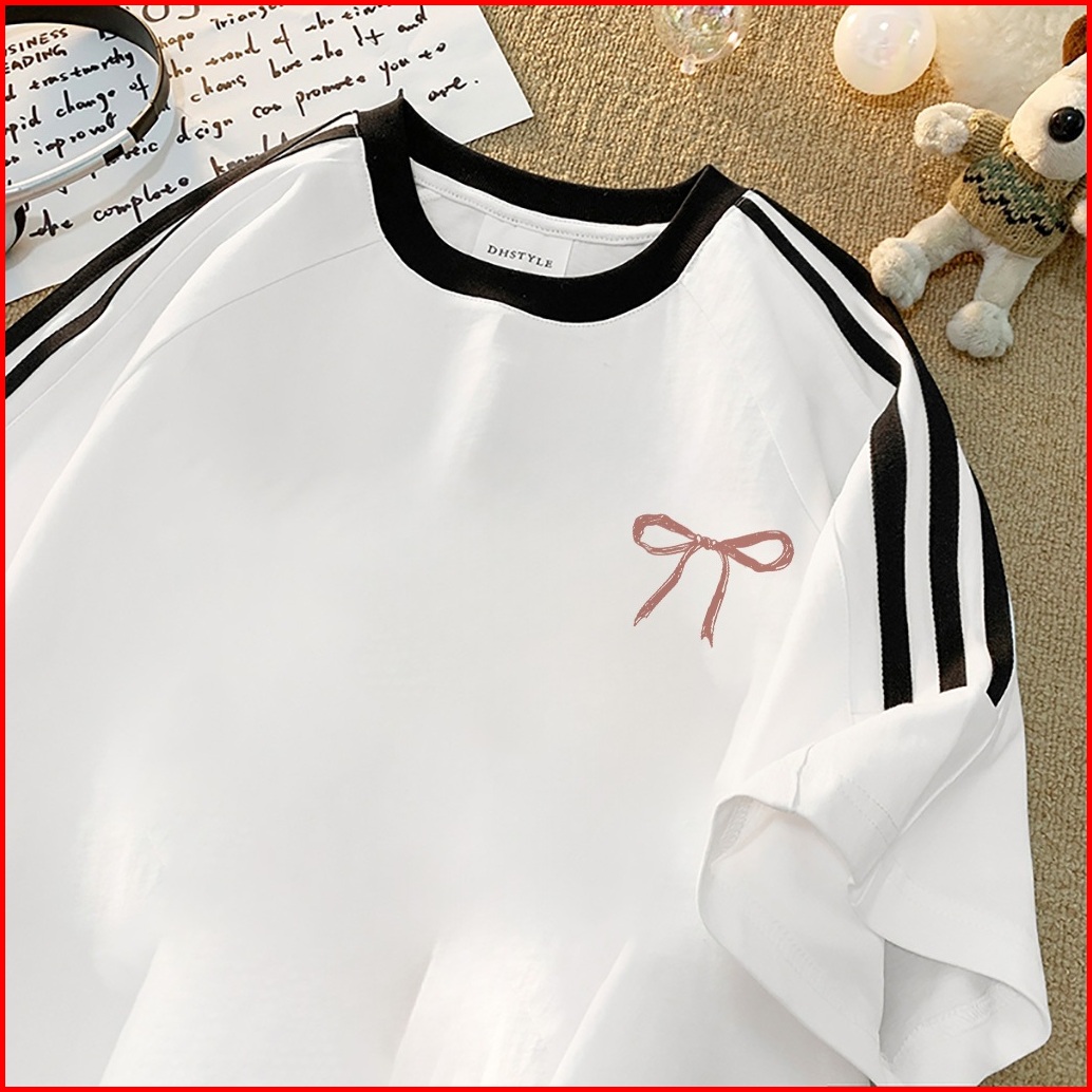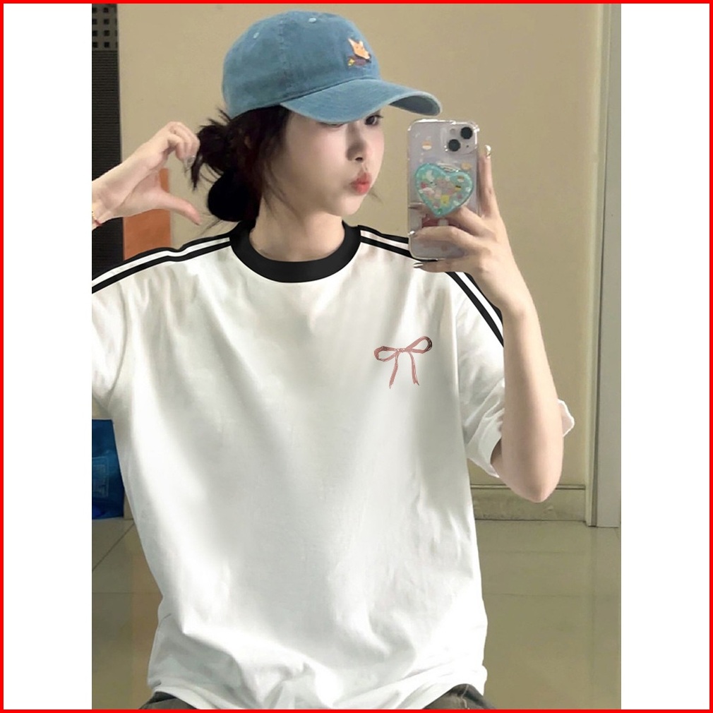 Forteid Cetakan Merek Trendi Retro Baju Oversize Busur Merah Lucu Korean Style Kaos Longgar Kaos Merah Putih Agustusan K