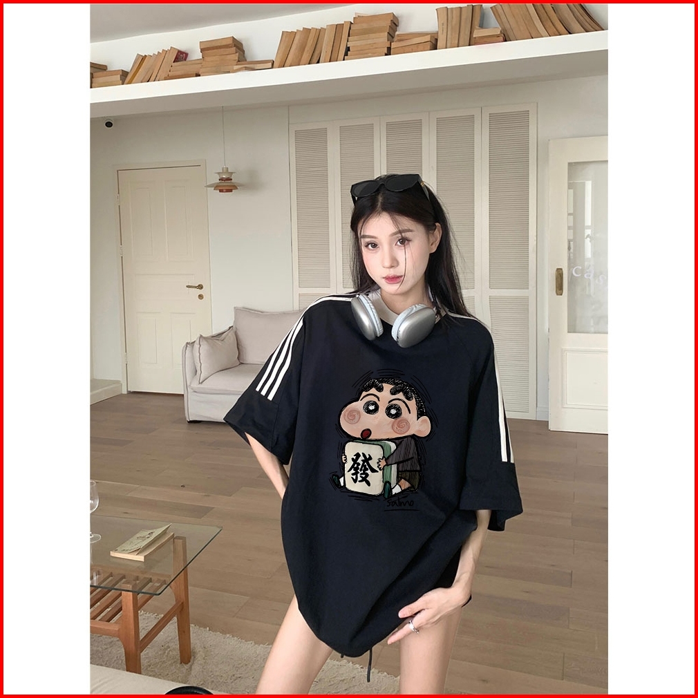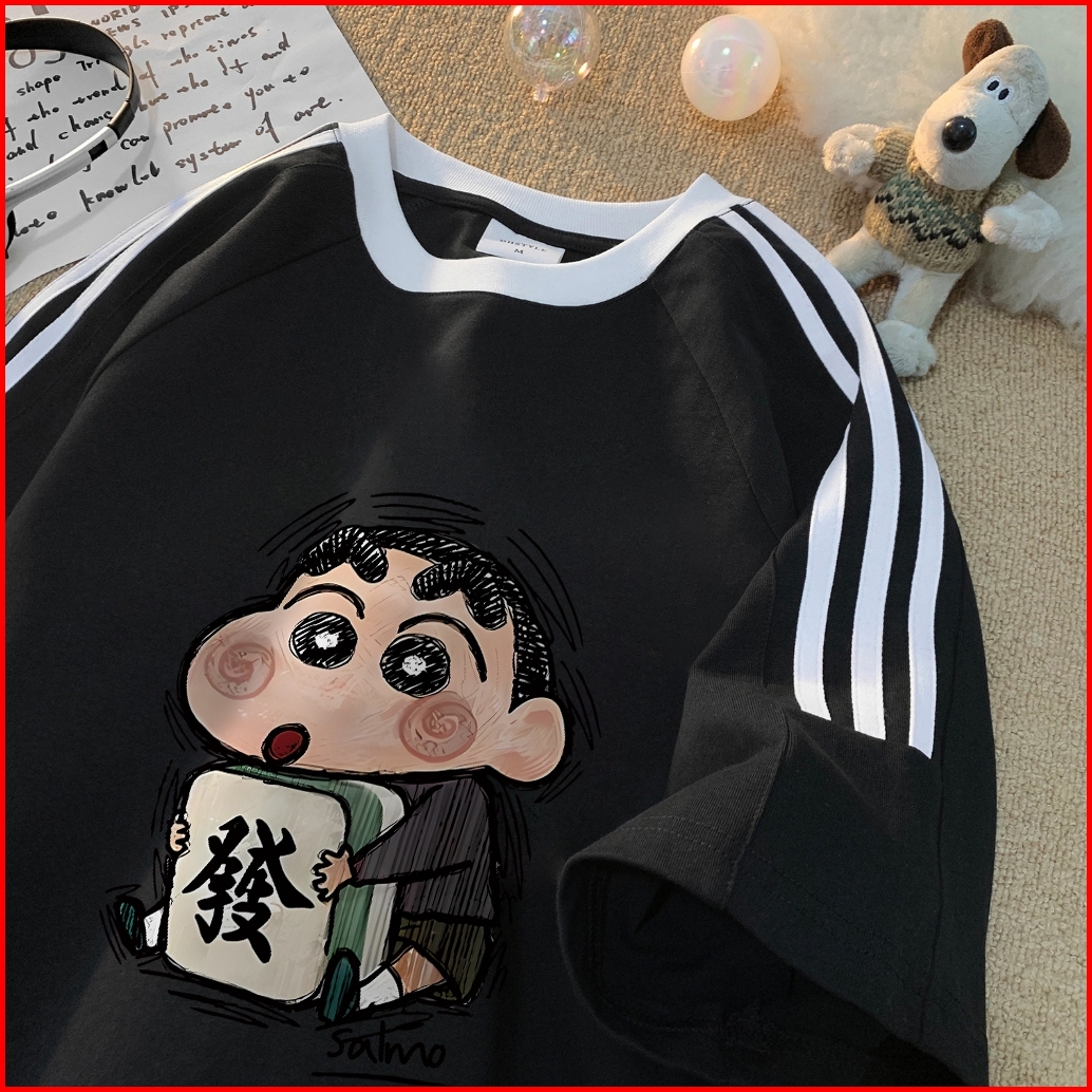 Forteid Cetakan Merek Trendi Retro Baju Oversize Pola Crayon Shin-chan Menjadi Kaya Korean Style Kaos Longgar