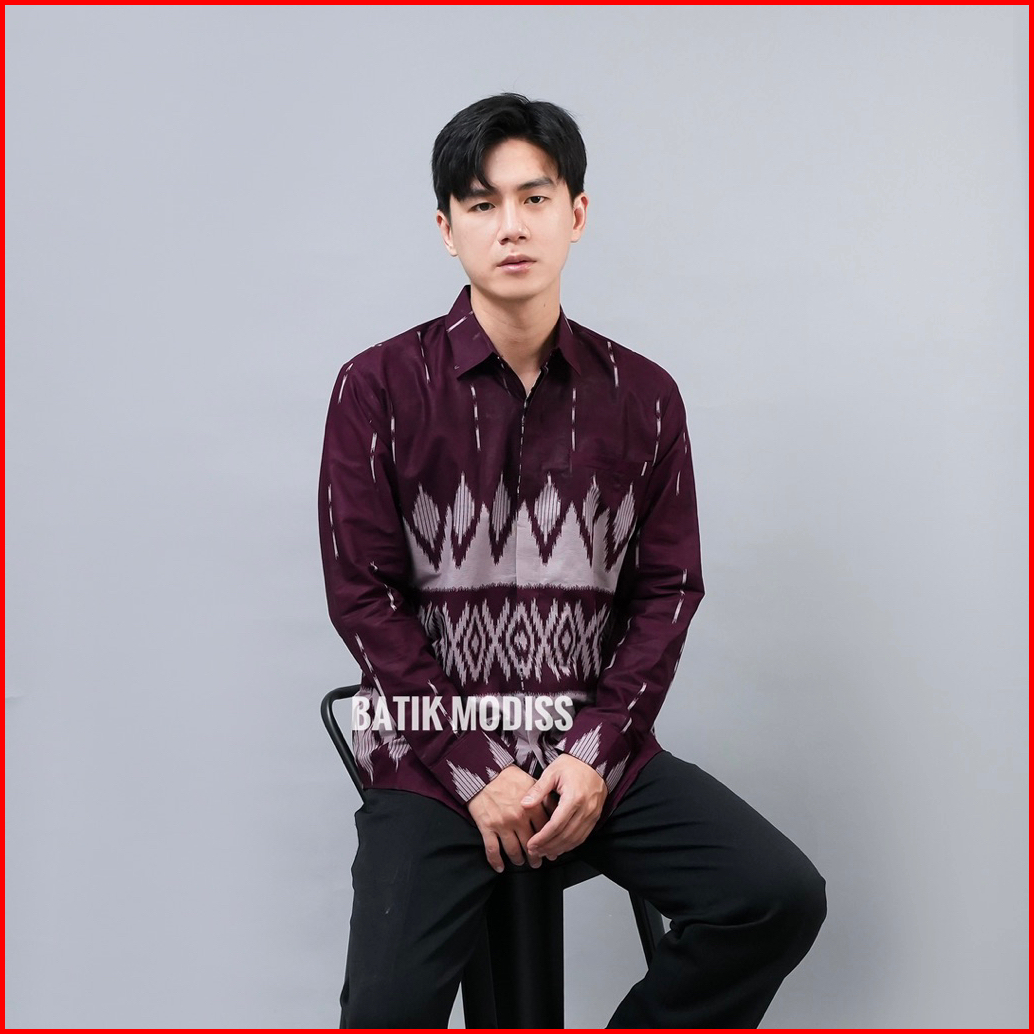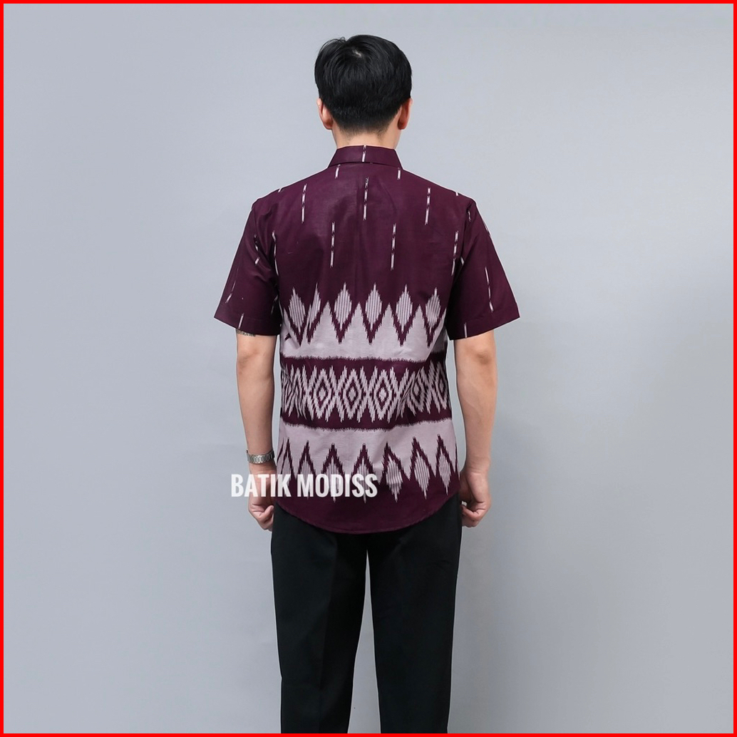 Etnik Burgundi Kemeja Baju Batik Modern Ekslusiv Lapis Furing Slimfit Bahan Katun