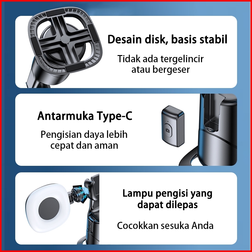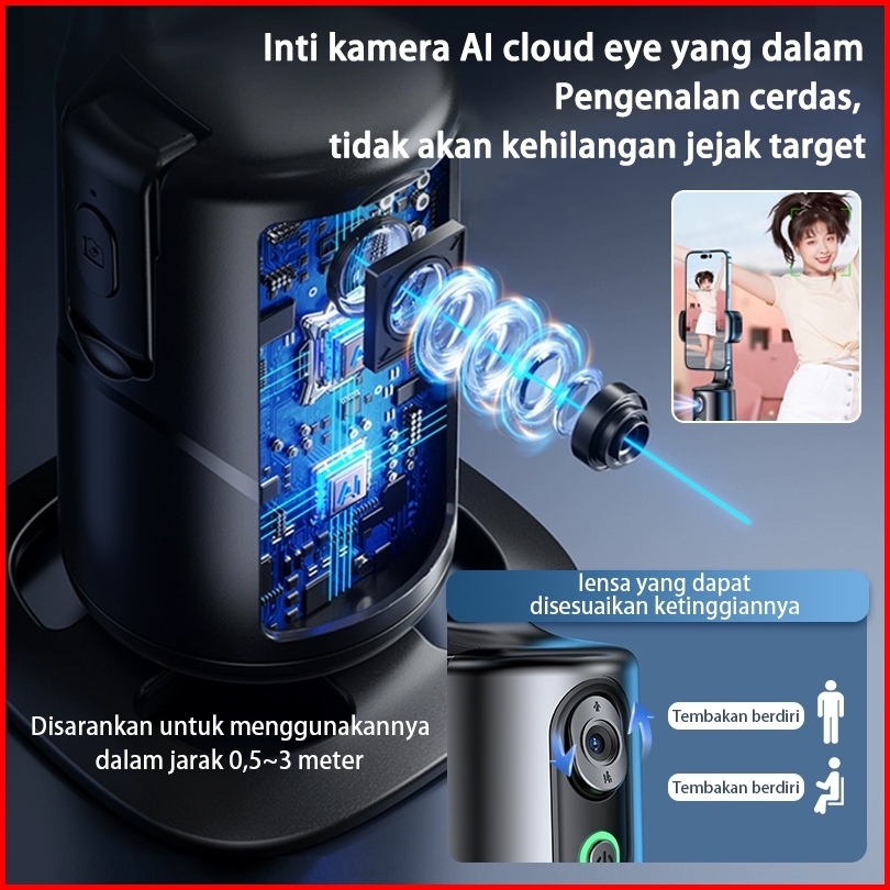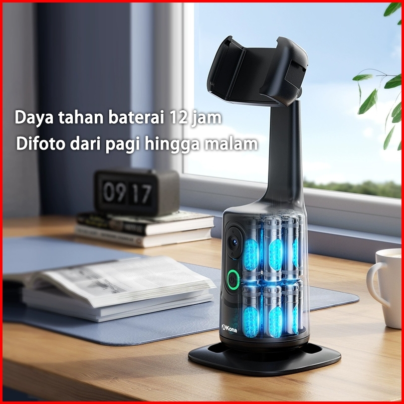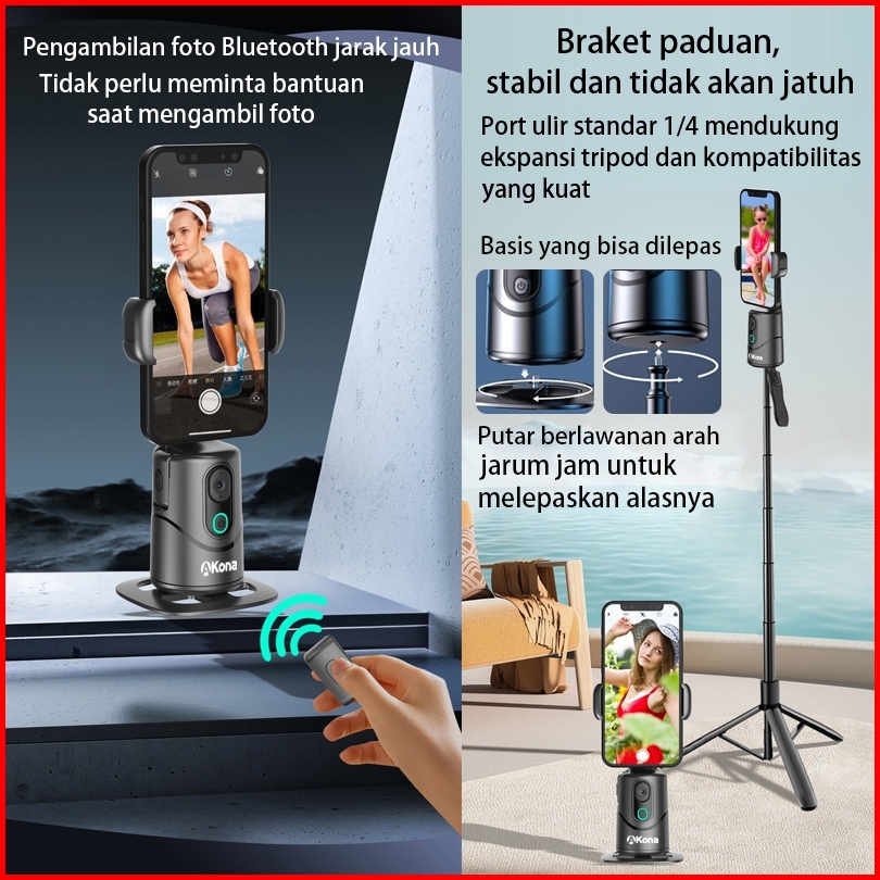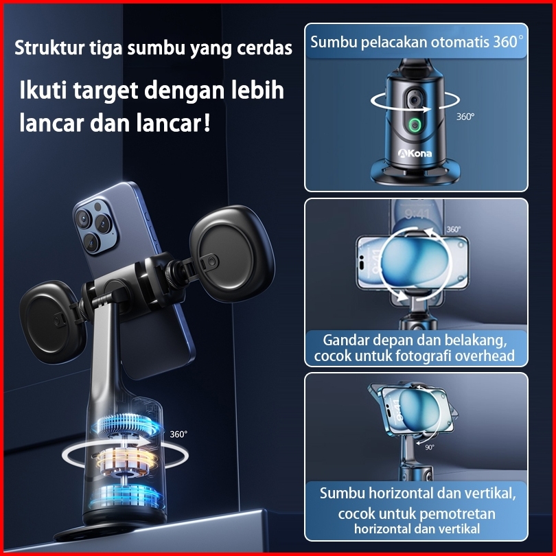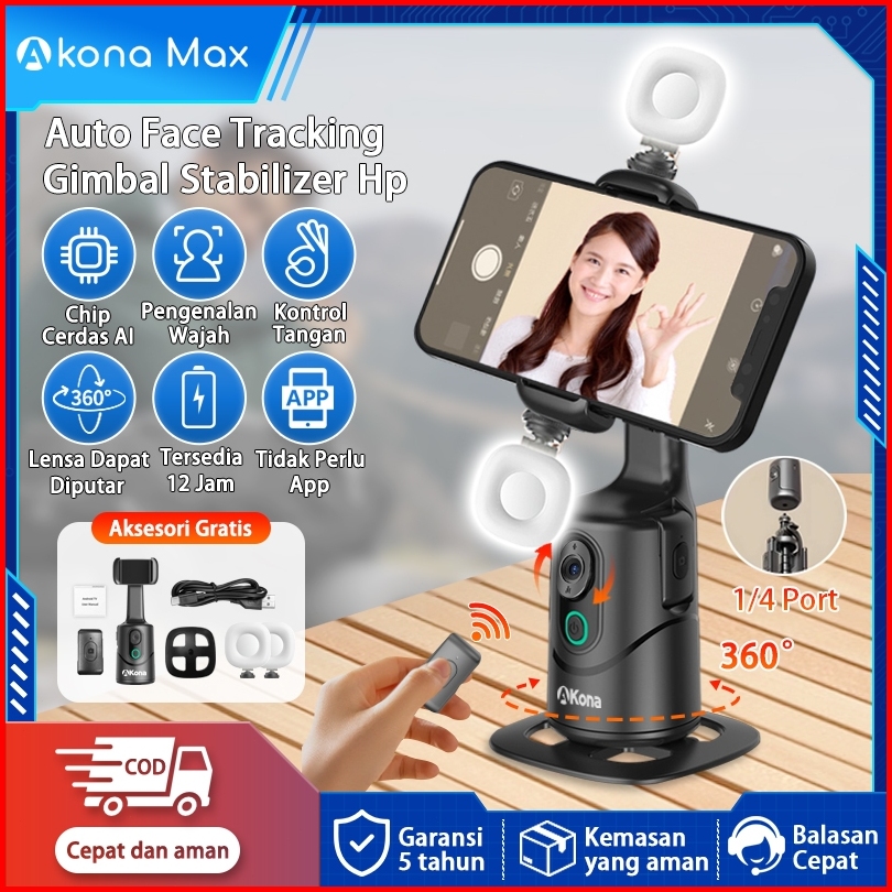 Akona Gimbal Stabilizer Hp 360 Ai Auto Face Tracking Gesture Control Bluetooth Remote With 2 Lampu Led Mulut Spiral 1 4