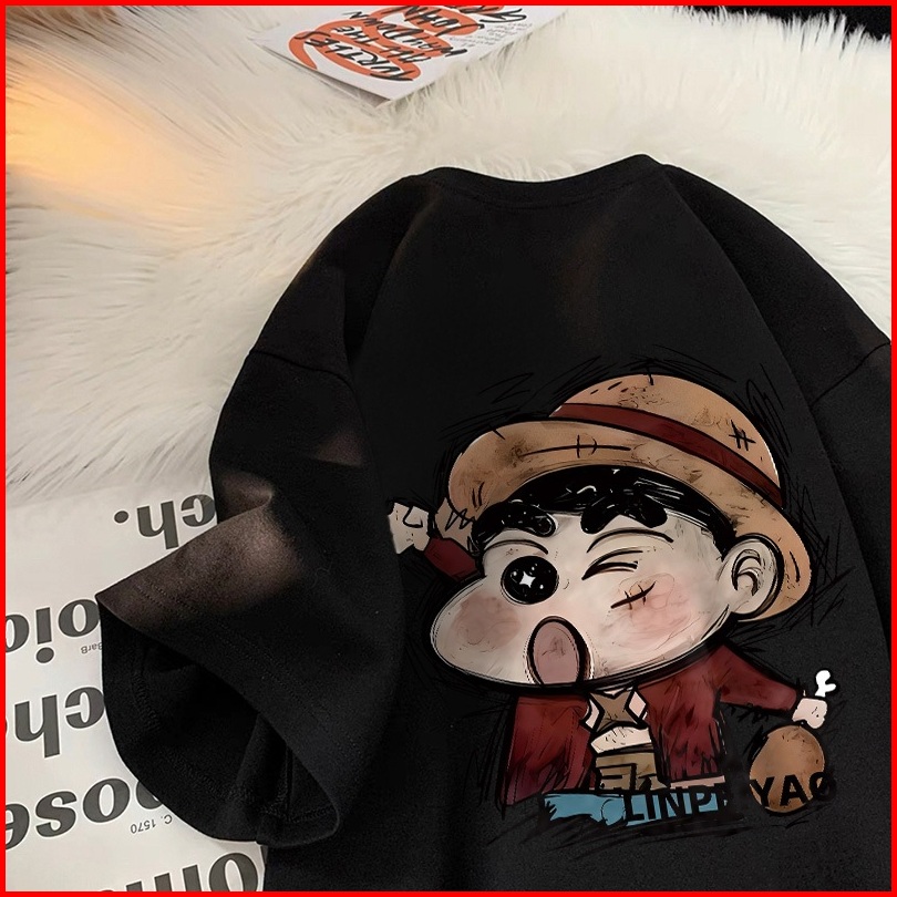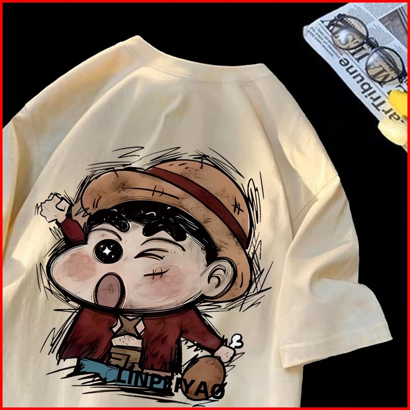 Forteid T-shirt Washed Oversize Kaos Oversize Wanita Kartun Lucu Hamburg Crayon Shin-chan Motif Graffiti Kaos Coklat Wan