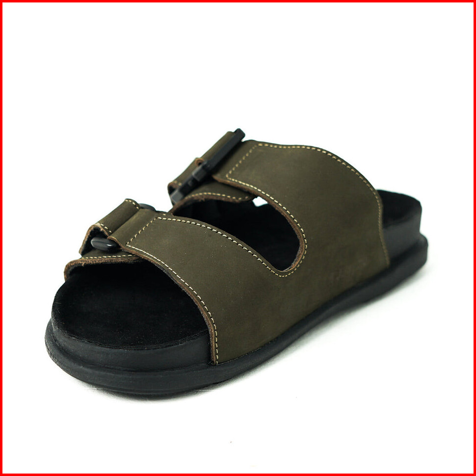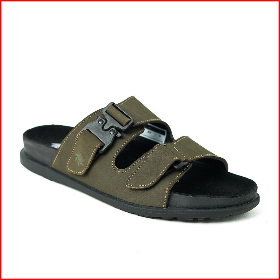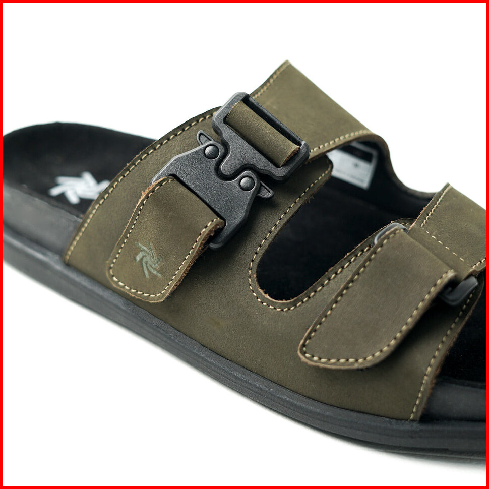 Julaybib Agadir - Moss Nubuck Leather Sendal Olive Army Slippers Casual Original Sandal Slip Pria Wanita Kulit Asli Nubu
