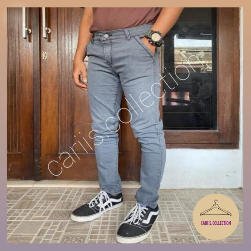 Celana Jeans Pria Skinny Grey Slimfit Strech Sofjeans Panjang Abu abu No Ripped