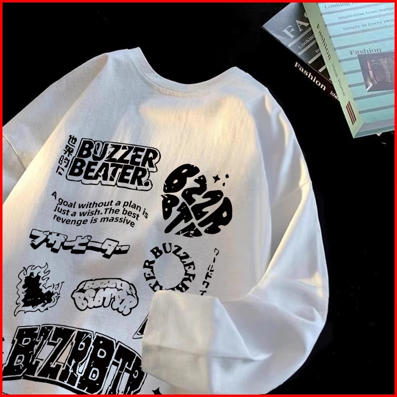 Forteid Atasan Kaos Wanita Oversize Lengan Panjang Korean Style Gaya Huruf Trendi Yang Dipersonalisasi Baju Kaos Polos C