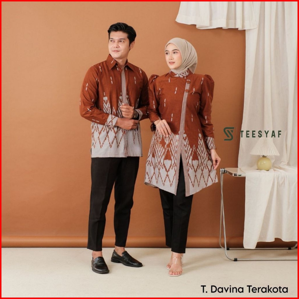 Teesyaf -an1-07 Baju Batik Tunik Couple Kerja Pria Wanita Motif Puffy Daviena