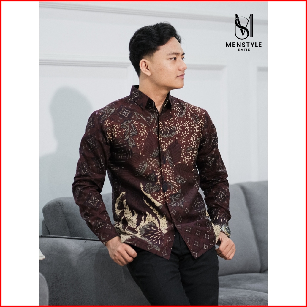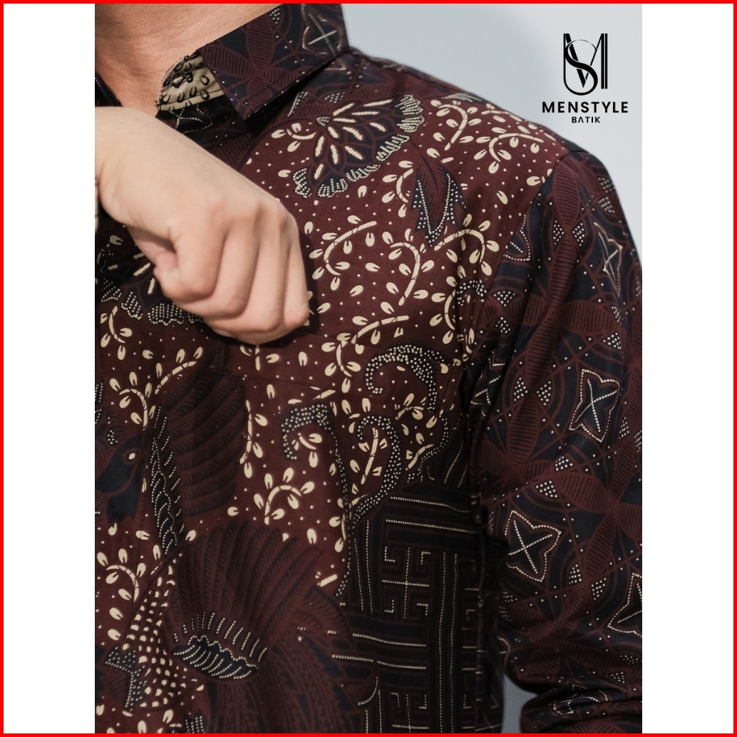 Menstyle Batik - Kemeja Batik Pria Wilutama Mahogany Slimfit Lapis Furing Bahan Katun Prima Lengan Panjang