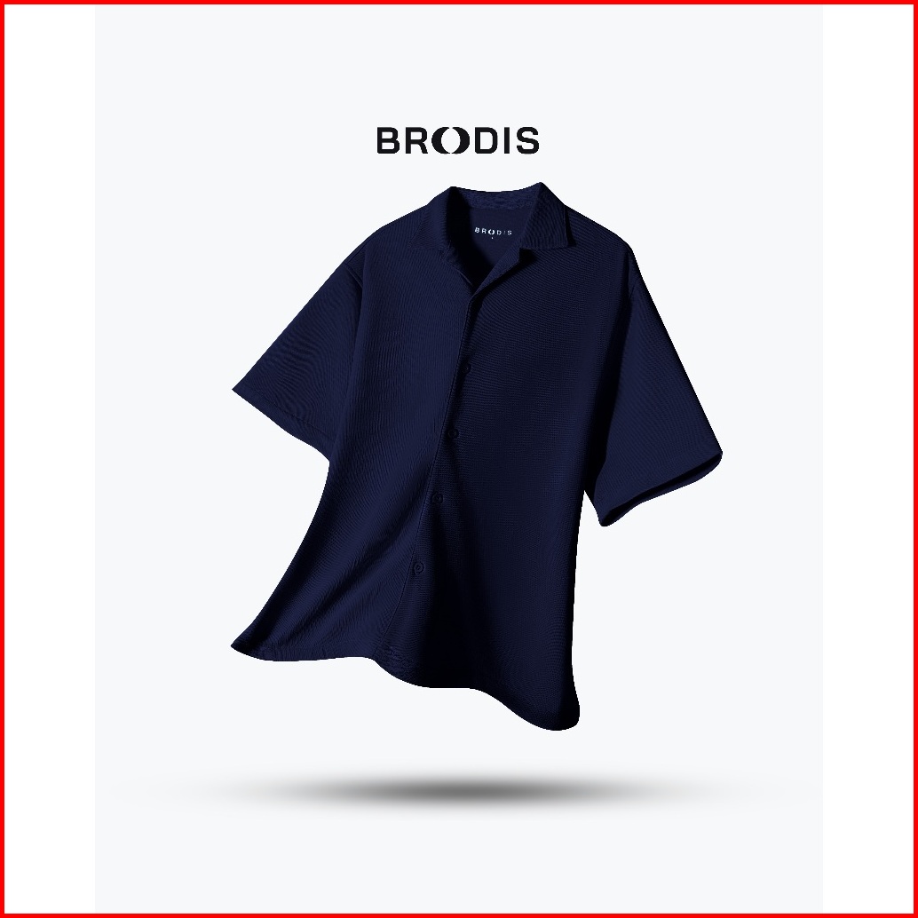 Broodis Kemeja Bowling Pria Bondee Series Navy Lengan Pendek Casual Relax Fit Anti Kusut