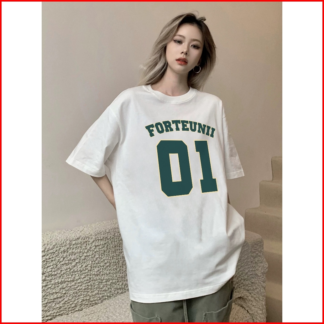 Forteid T-shirt Oversize Cetak Nomor 01 Tim Bola Basket Amerika Oversize Korean Style Kaos Wanita Lengan Pendek 100 Cott