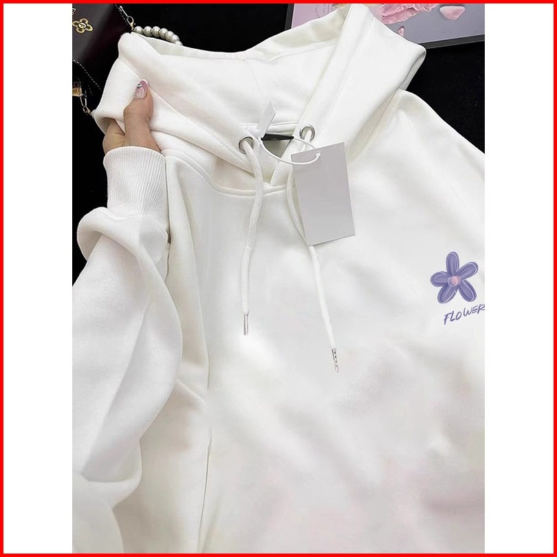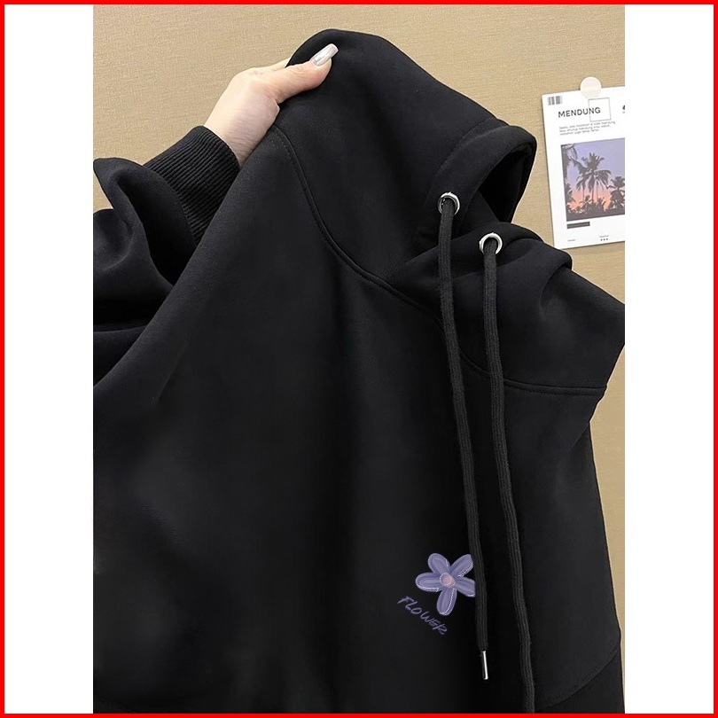 Forteid Couple Hoodie Sweater Wanita Oversize Pola Bunga Kartun Ungu Korean Style Baju Wanita Kekinian Baju Wanita Swite