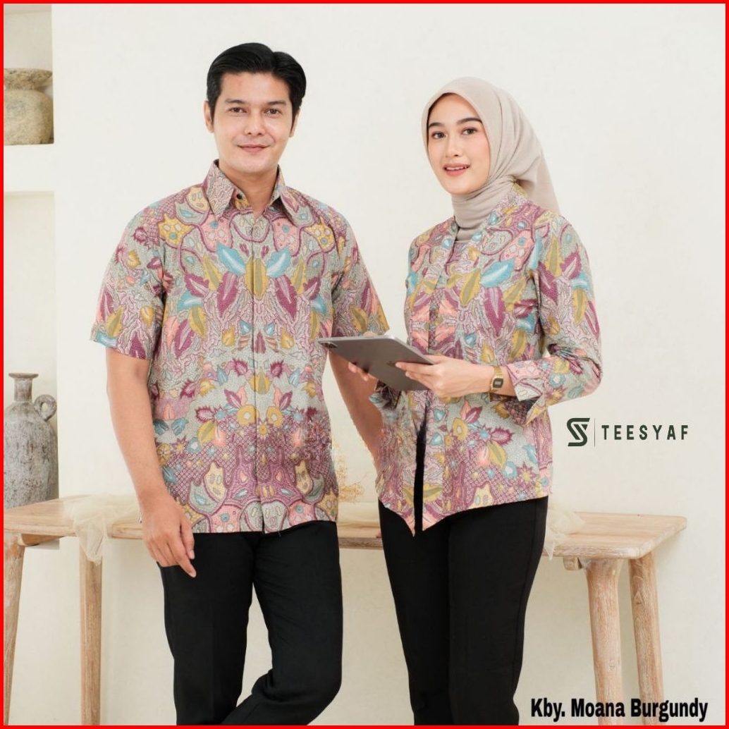 Teesyaf - An1-05 Atasan Baju Batik Couple Kerja Kantor Seragam Pria Wanita Motif Kby Moana