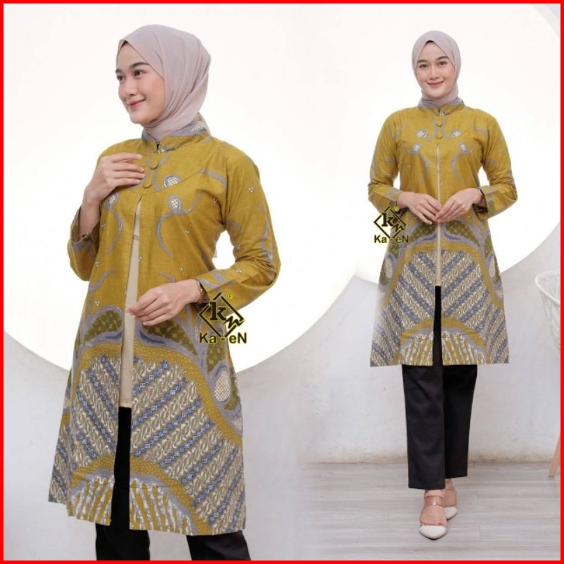 Batik Tunik Couple Modern Set Pakaian Couple Kemeja Batik Pria Panjang Atasan Batik Couple
