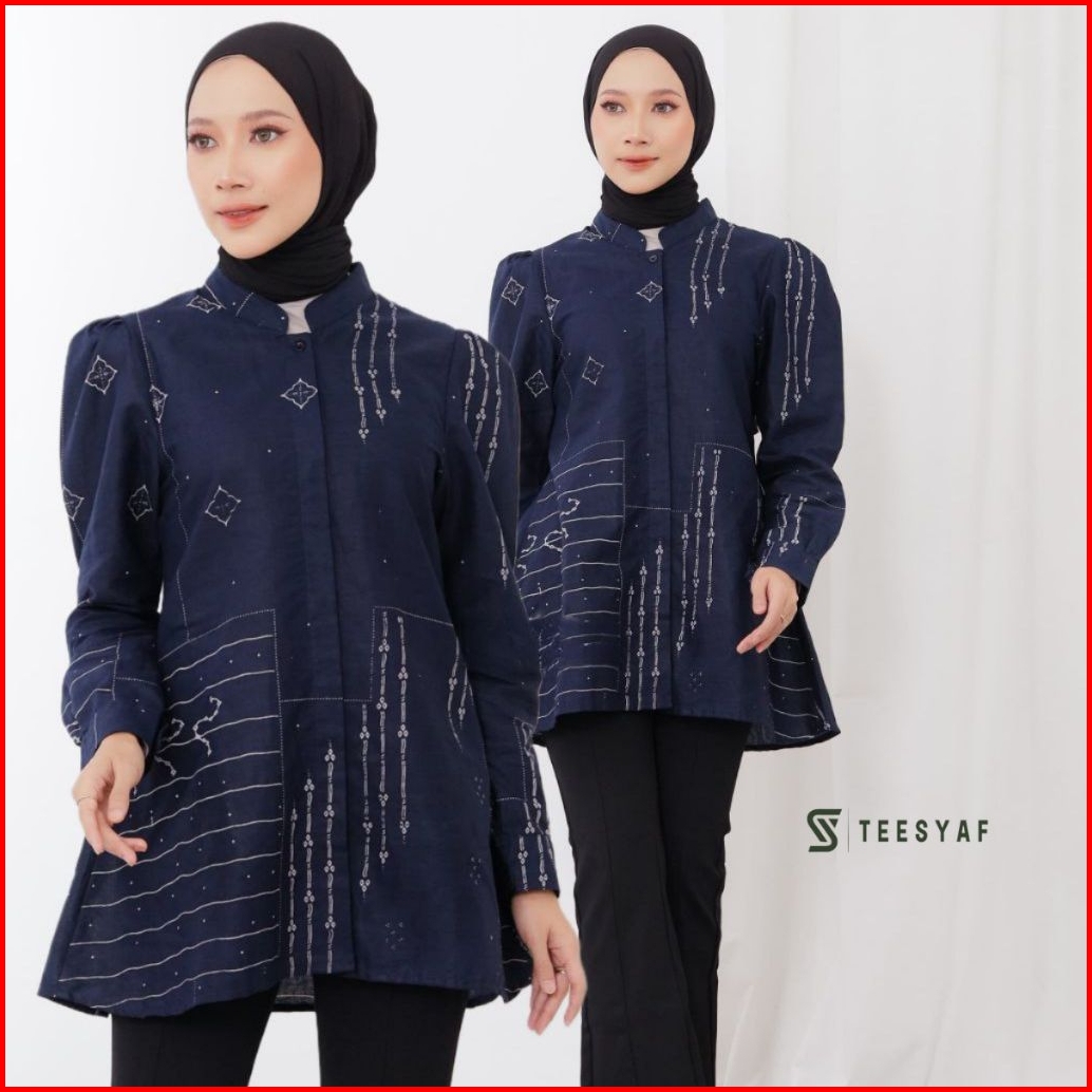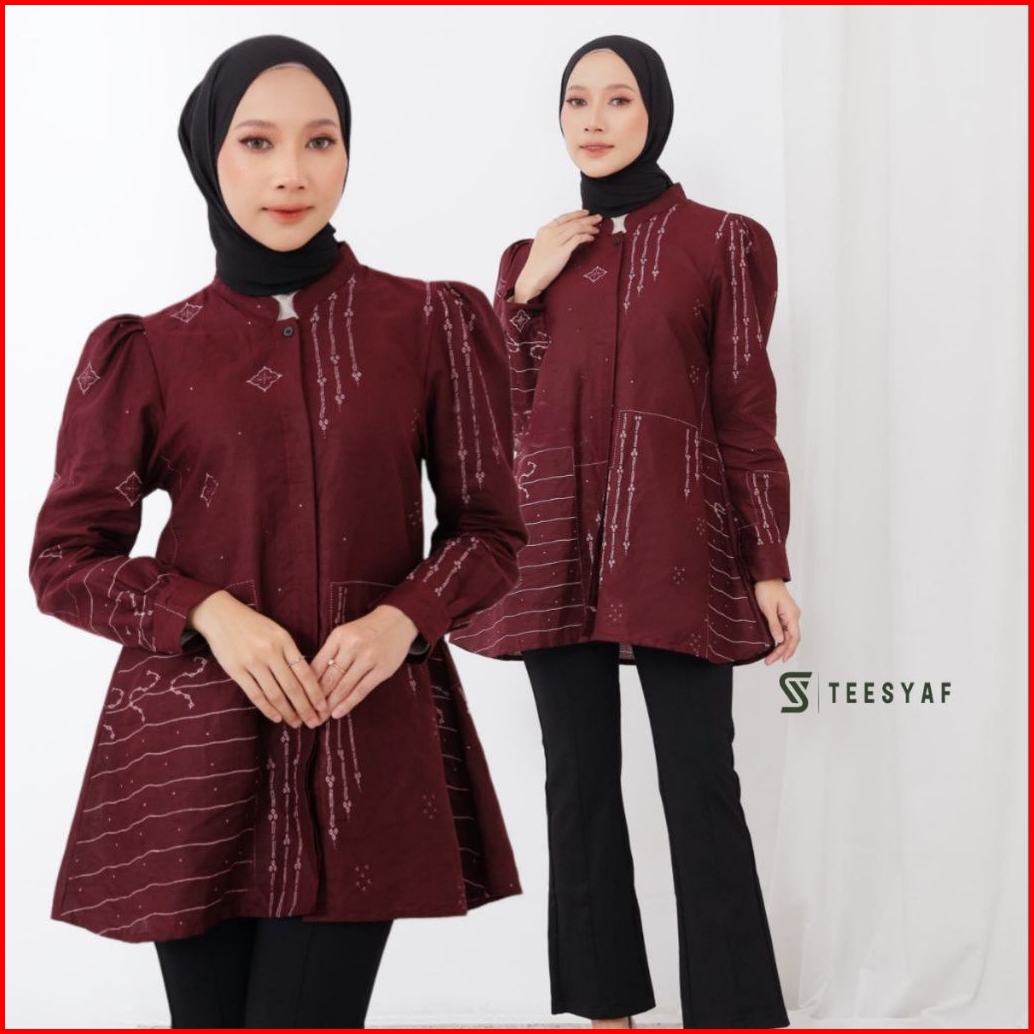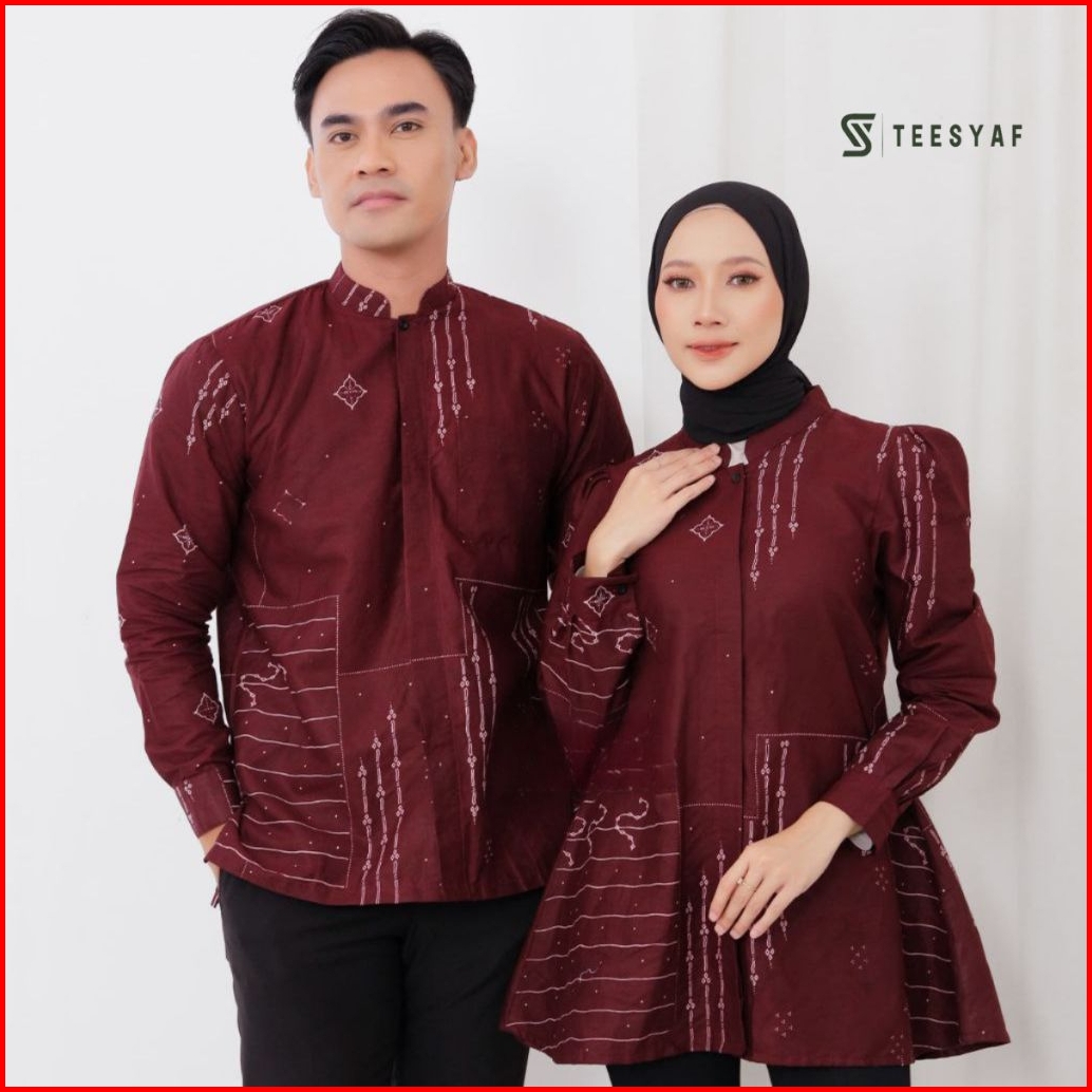 Teesyaf - Bk2-07 Batik Couple Atasan Kerja Kantor Pria Wanita Seragam Motif Puffy Panahan
