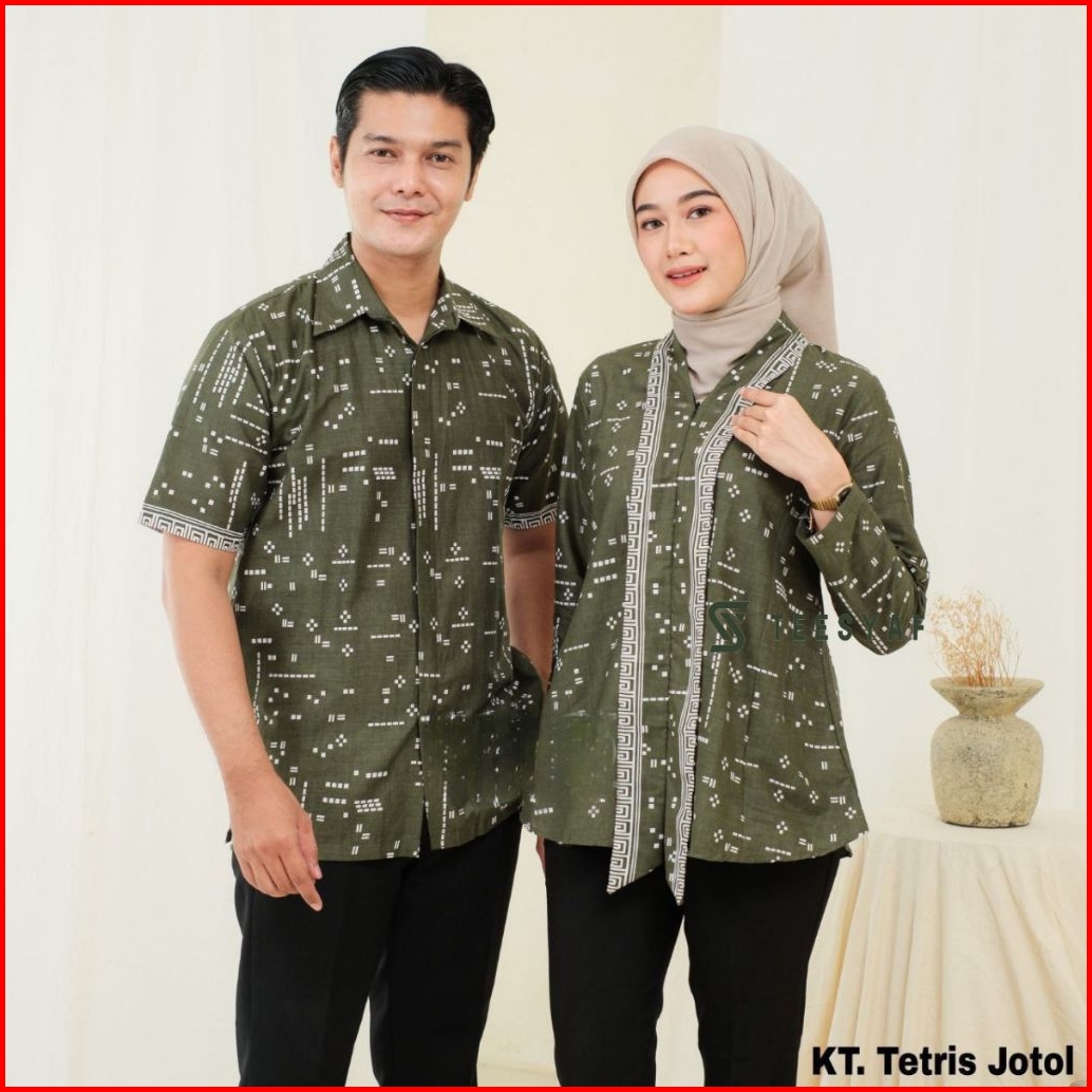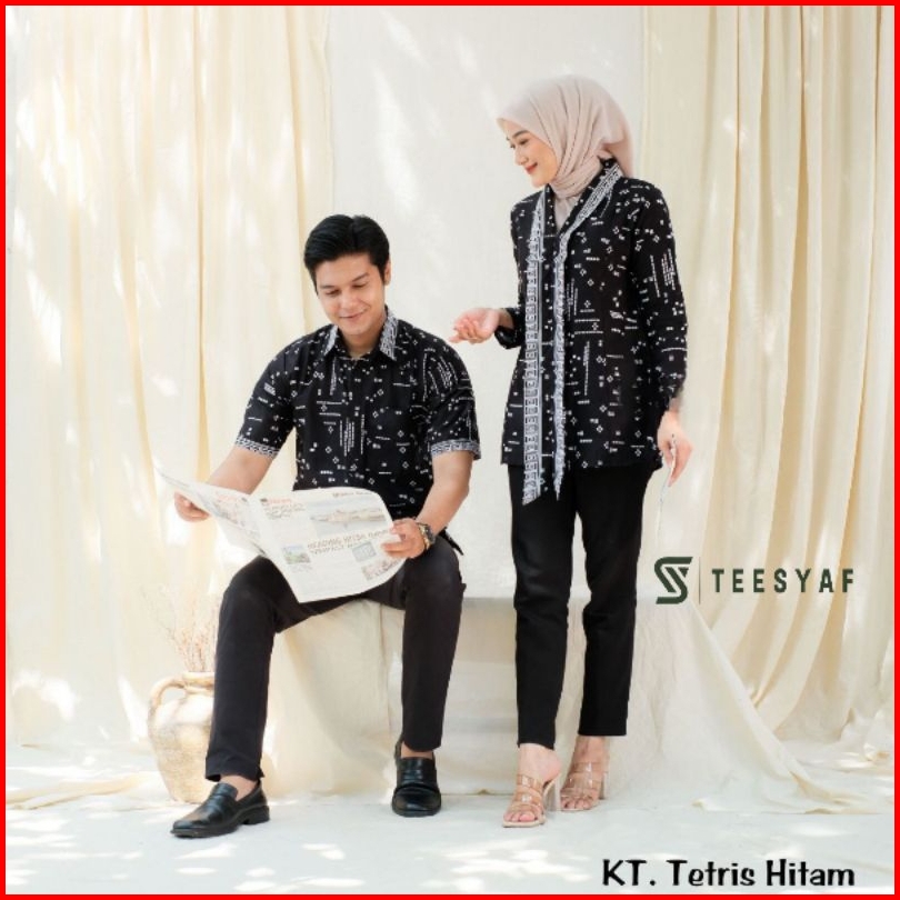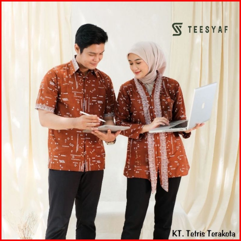 Teesyaf - An1-06 Baju Batik Couple Kerja Kuliah Kondangan Wanita Pria Modern Motif Kt Tetris