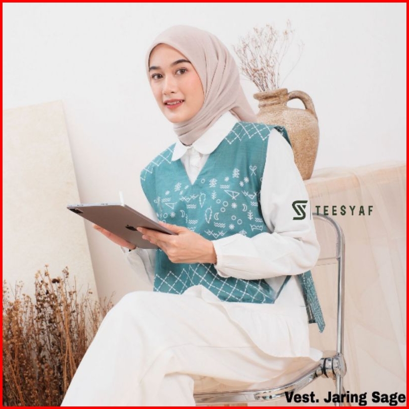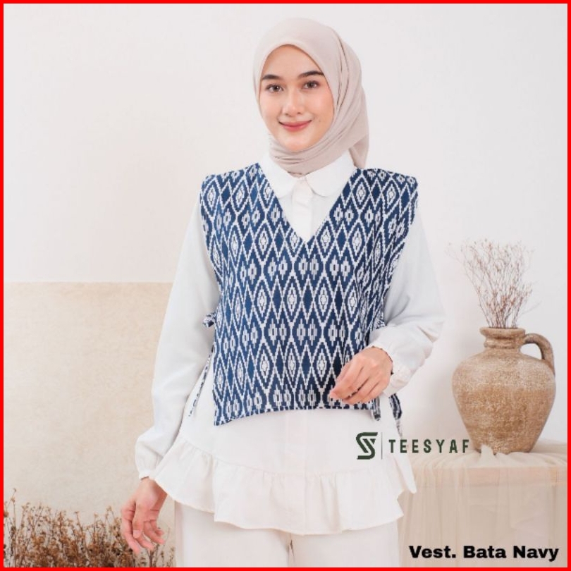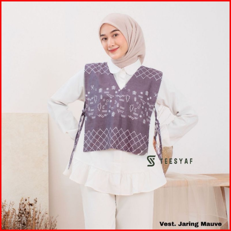Teesyaf - An1-14 Vest Batik Wanita Rompi Batik Atasan Wanita Outer Batik Modern Vest Batik Motif Jaring New