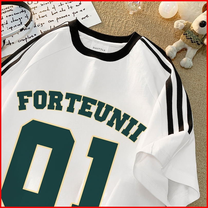 Forteidpencetakan Digital Bola Basket Amerika Pencetakan No. 01 Korea Oversize Bergaris Bahu Korean Style Kaos Longgar